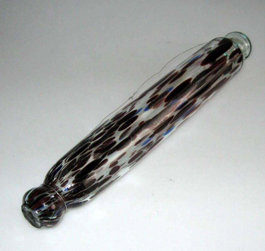 English rolling pin in colored glass, 19th century. Green with red and blue. L .: 40 cm.