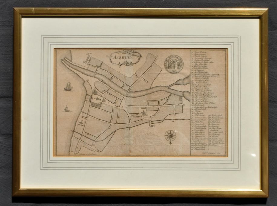Topografisk kort over Aarhus, 1767. Danmark. Kobberstik. H. C. Cramer. 20 x 32 cm.