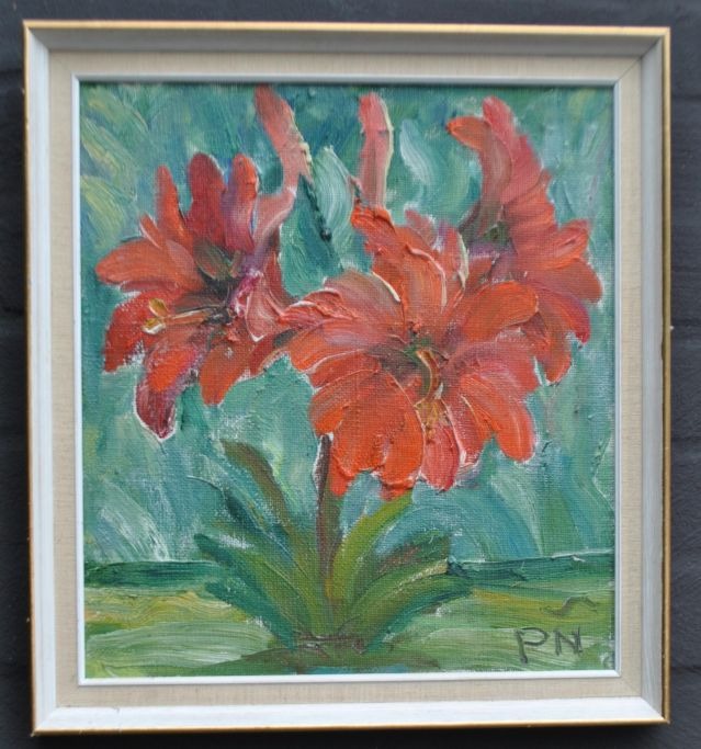 Nicolaisen, Peter (1894 - 1989) Danmark: Blomsteropstilling. Olie på lærred/pap. Signeret. 35 x 31 cm.