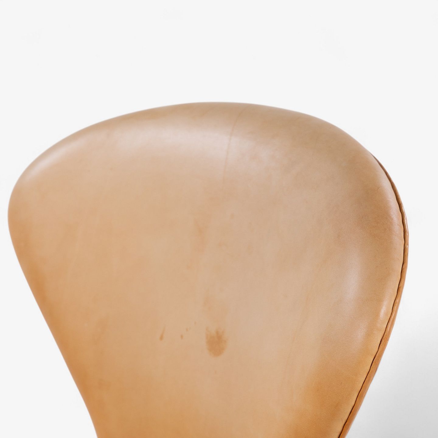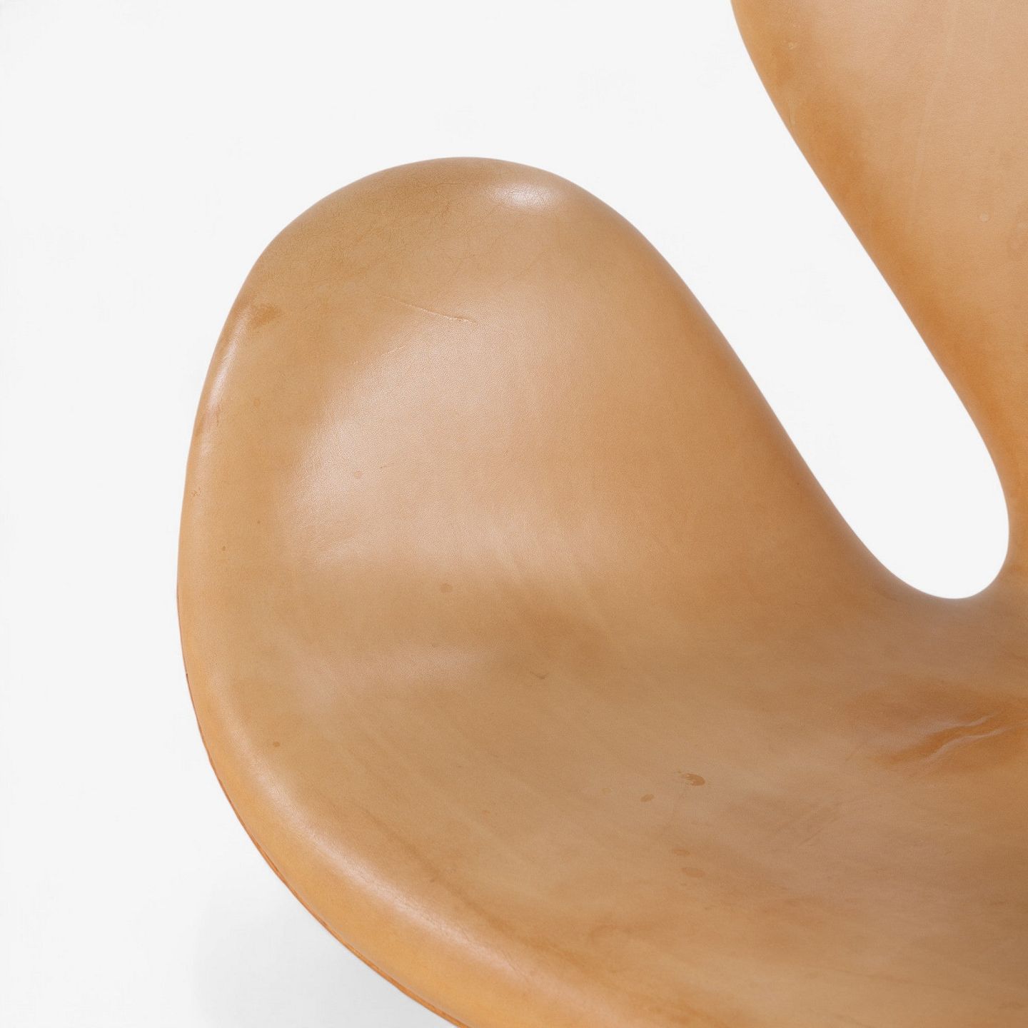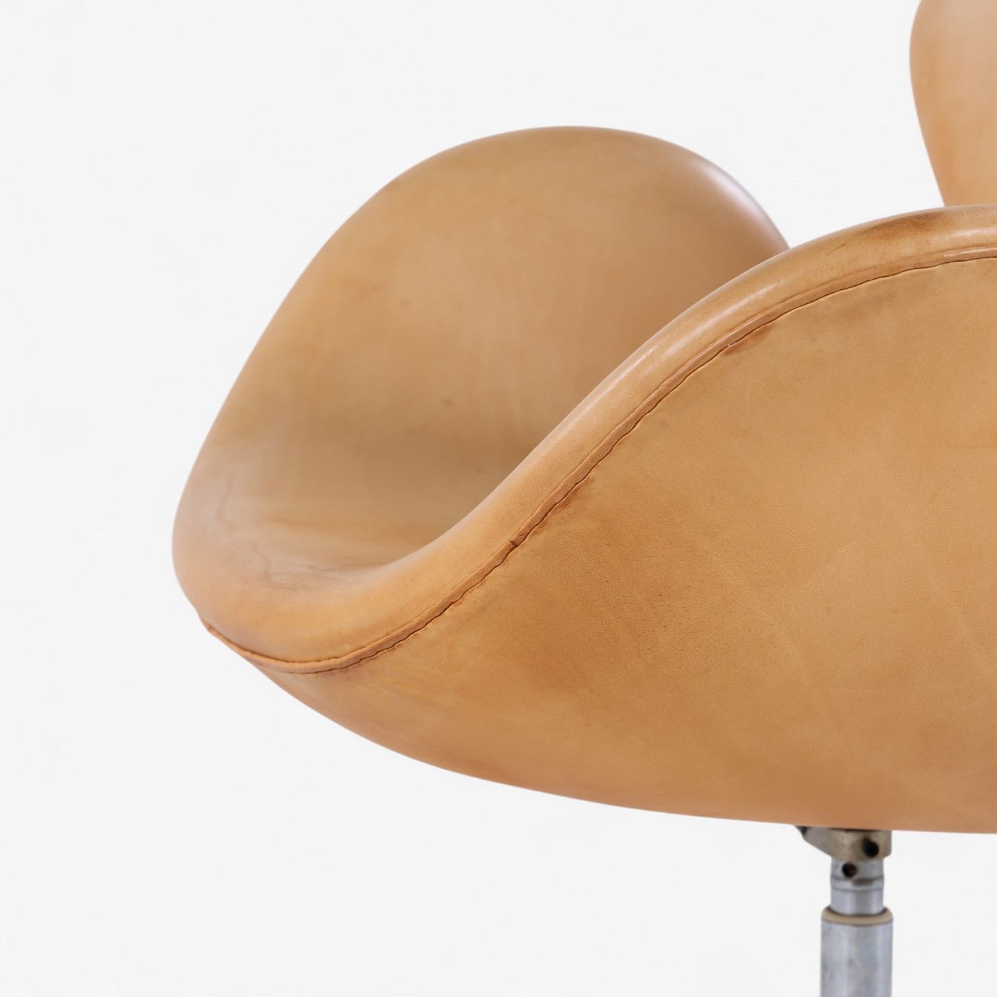 AJ 3320 - 'Svanen'-lænestol i patineret naturlæder på ny fod. Stemplet fra producenten.
