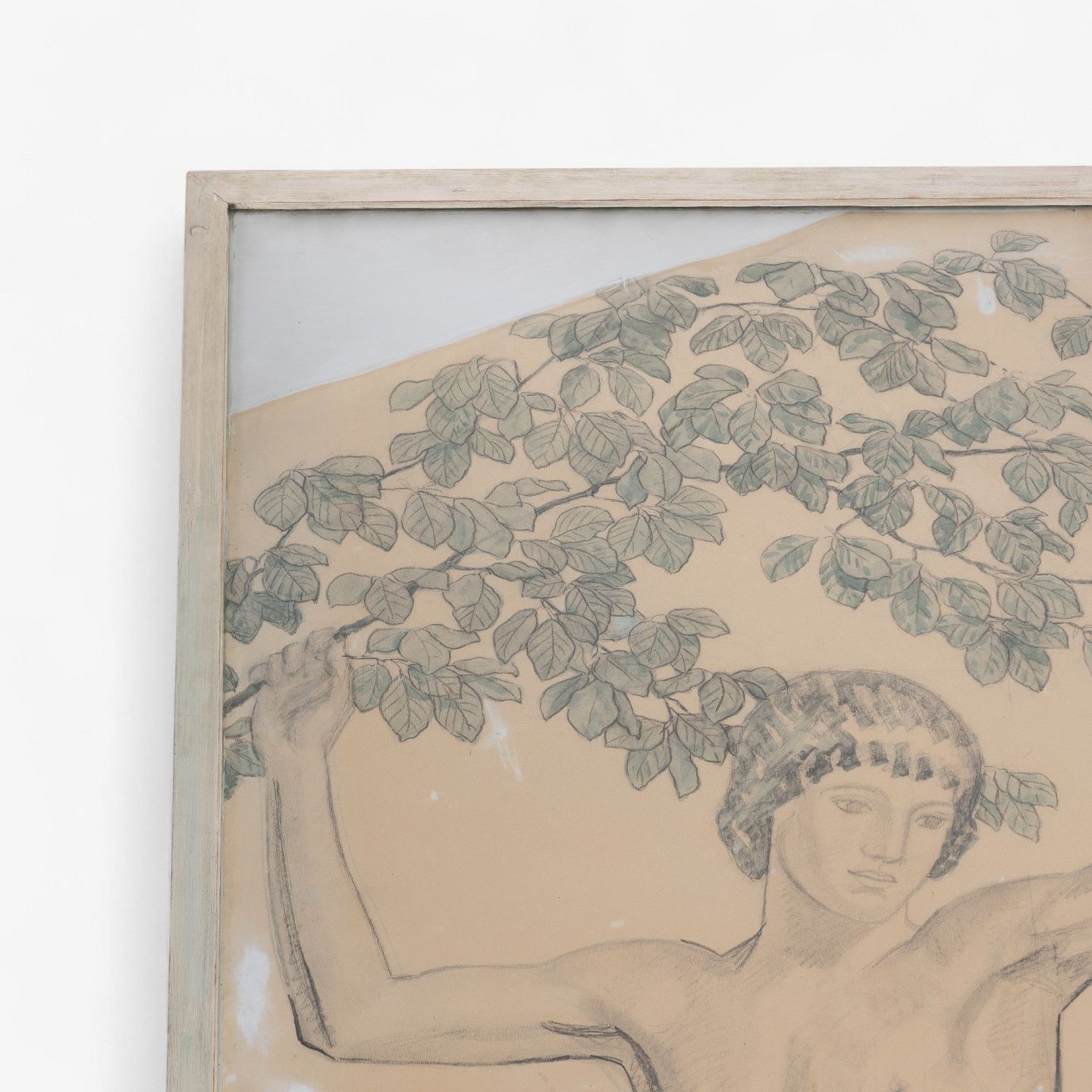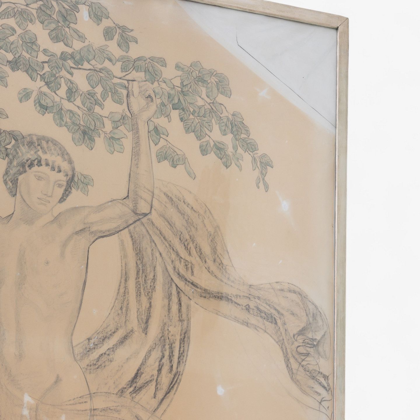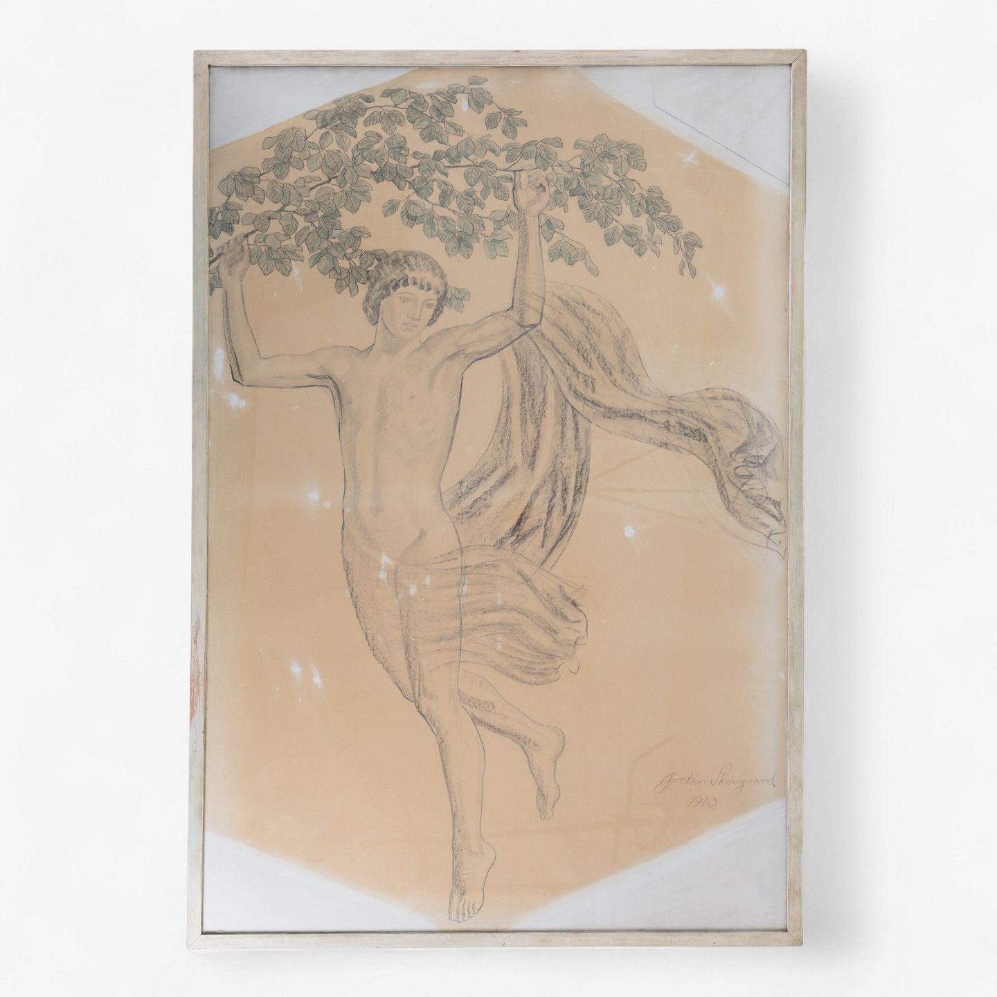 Stor skitse af blyant og let farvelægning i bemalet træramme fra 1910. Signeret af kunstneren.