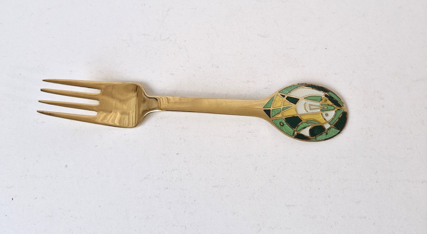 A.Michelsen julegaffel i forgyldt sterlingsølv med emalje 1980
