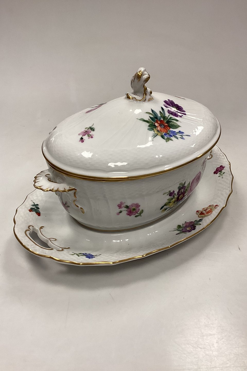 Royal Copenhagen Saksisk Blomst Let Terrin No. 1666 med underfad No. 493/1671