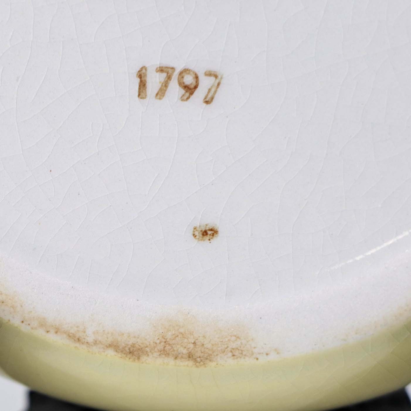 Fremstår med krakkeleringer i glasuren.