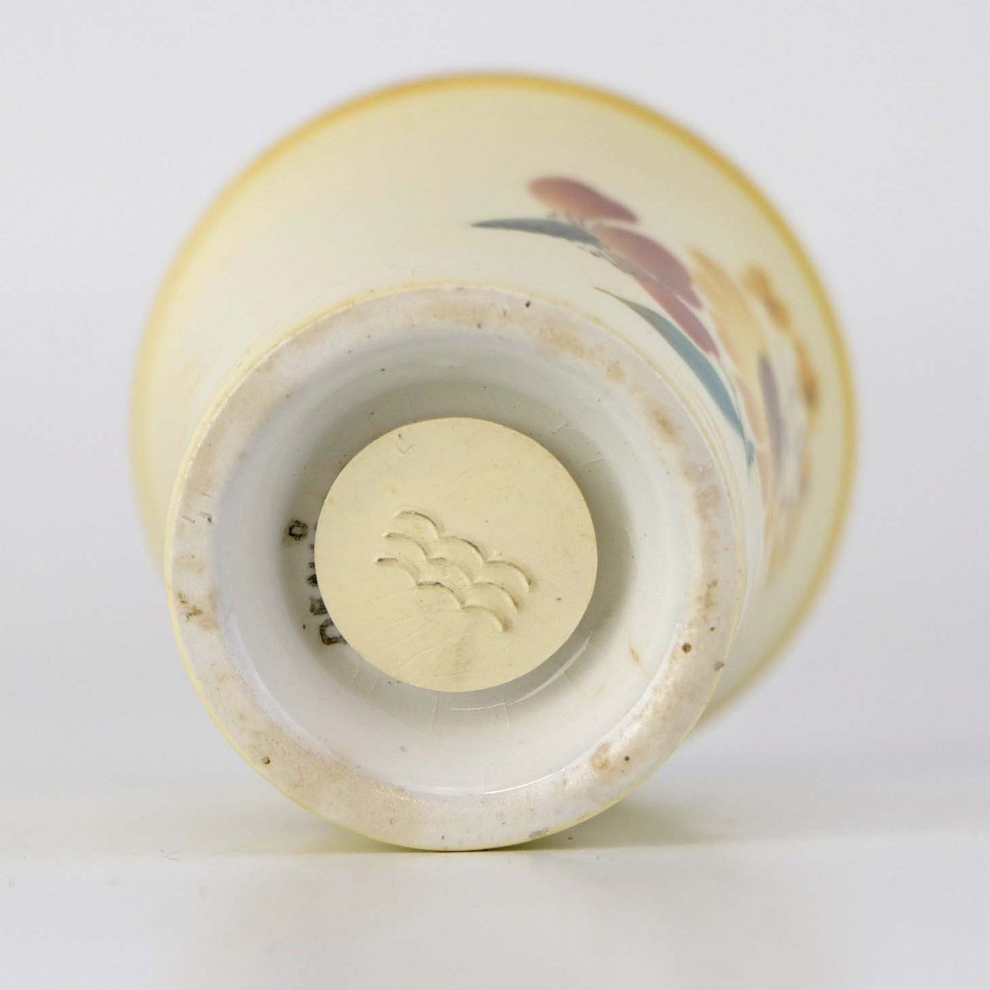 Fremstår med et mindre nøk i glasuren ved støhullerne samt mindre grønlig nuance under glasuren på et mindre område på toppen.