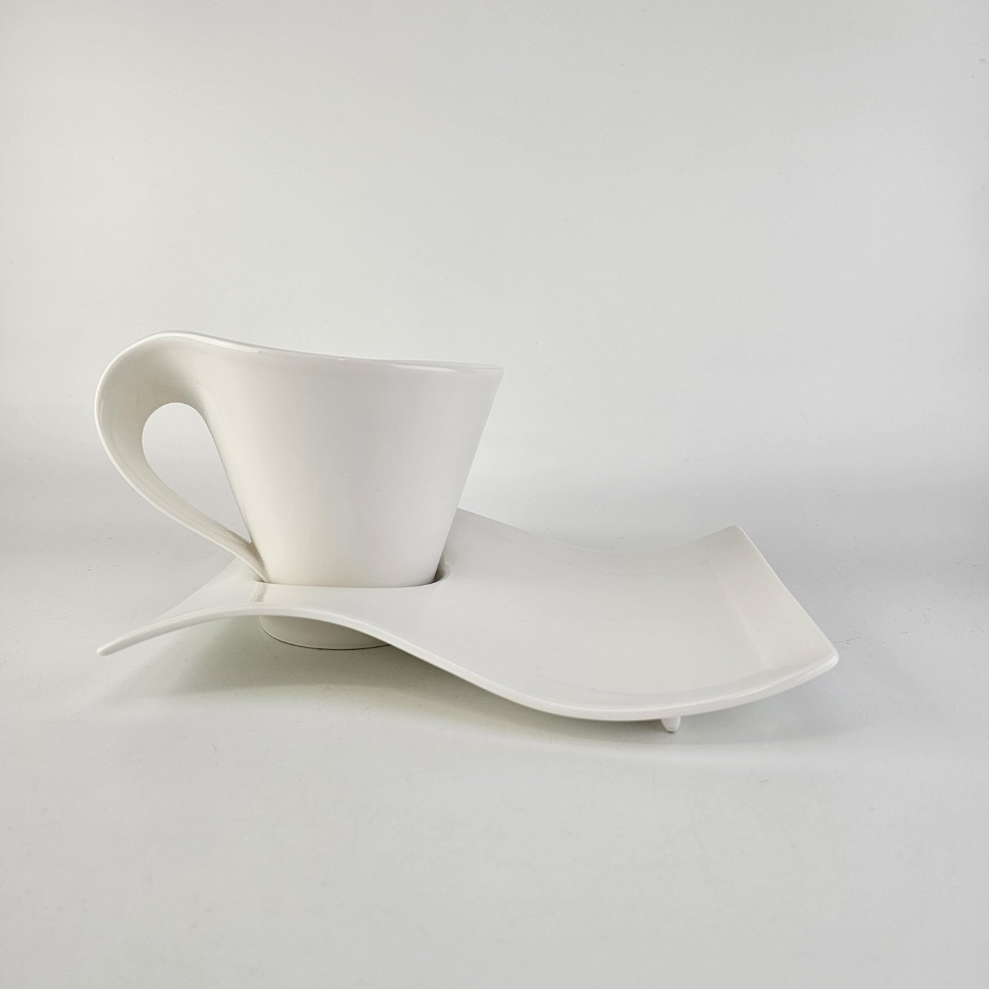 Stor kop og underkop i porcelæn fra stellet New Wave