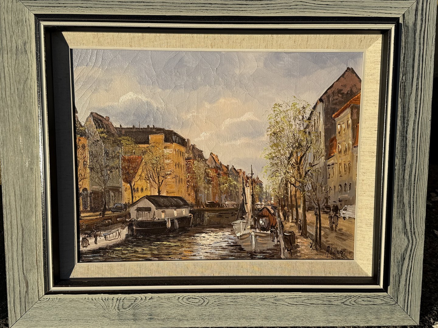 Aksel Lang Olsen (born 1931), Christianshavn Canal, Oil painting on canvas, Dimensions with frame: 48x58cm