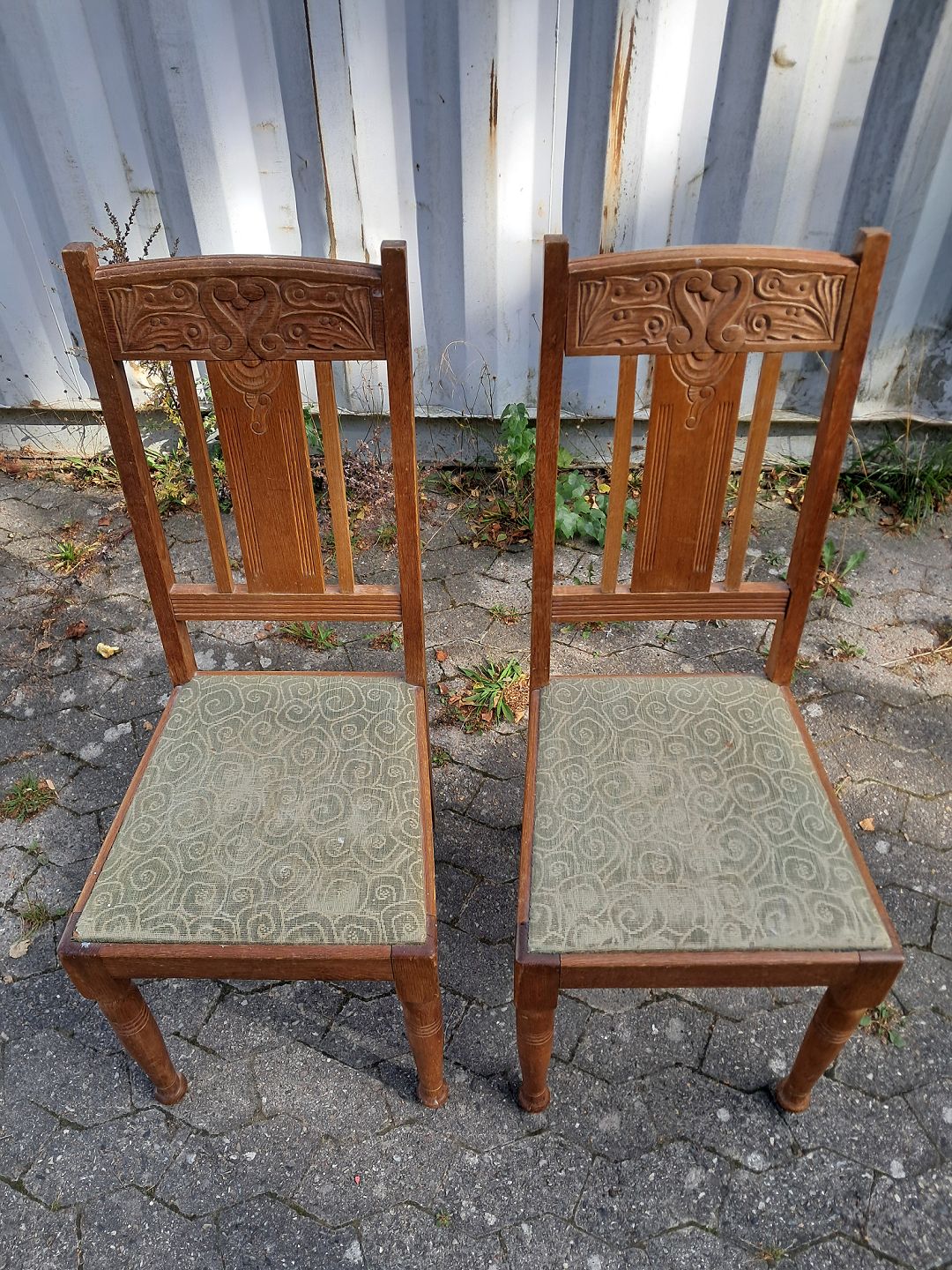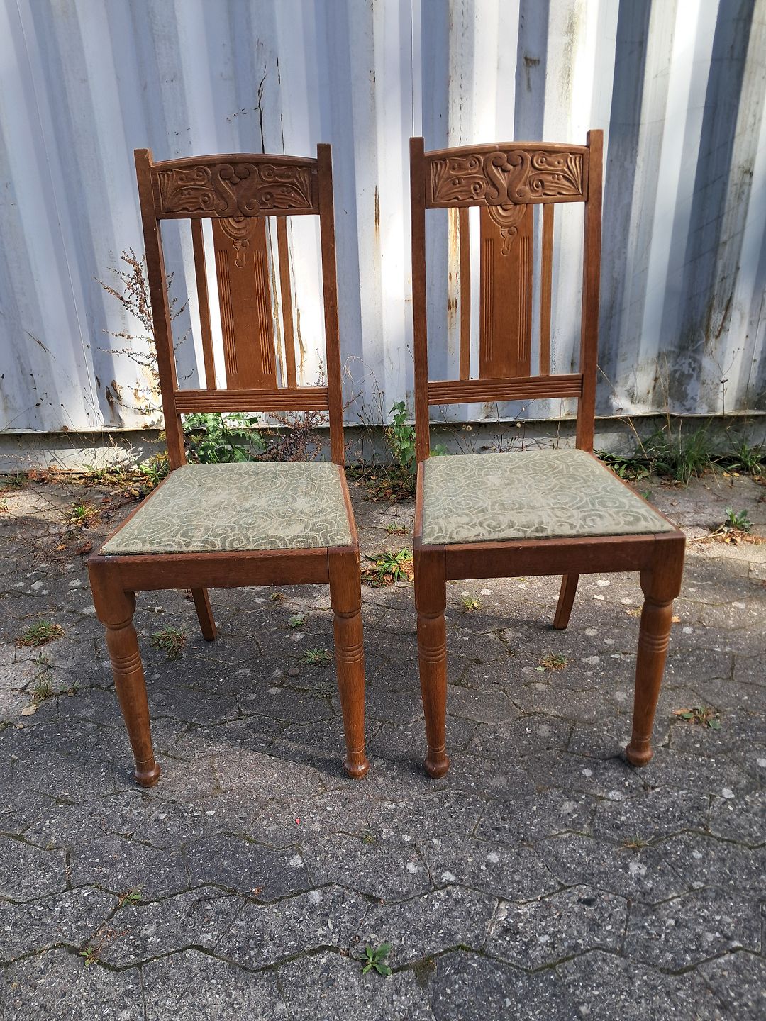 2 Stole i massivt egetræ, fra 1910erne.