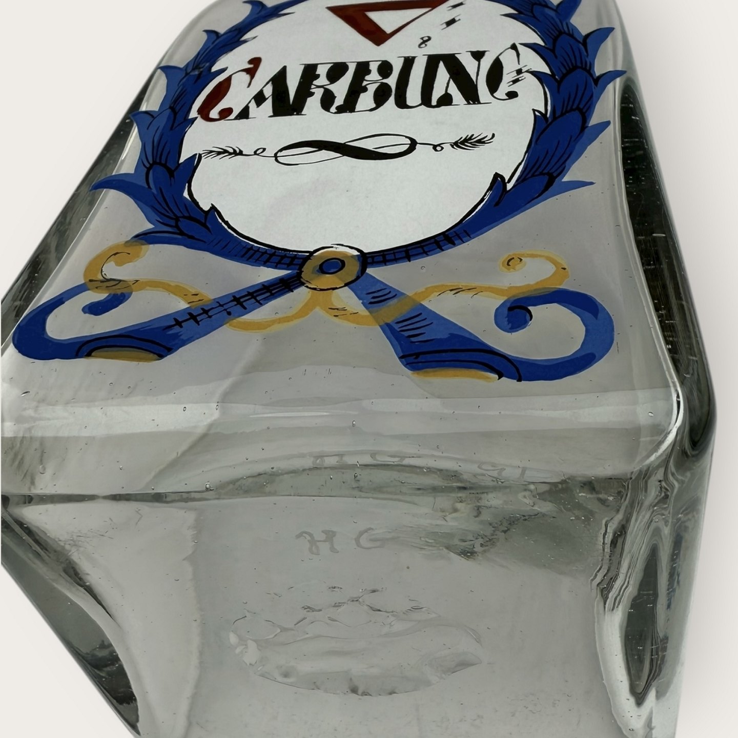 | Holmegaard apotekerflaske fra 1991, Carbunc, Mål: 22x8,5x8,5cm, flaskerne er mundblæste kopier af originale gamle apotekerflasker, Signeret Hg91.
