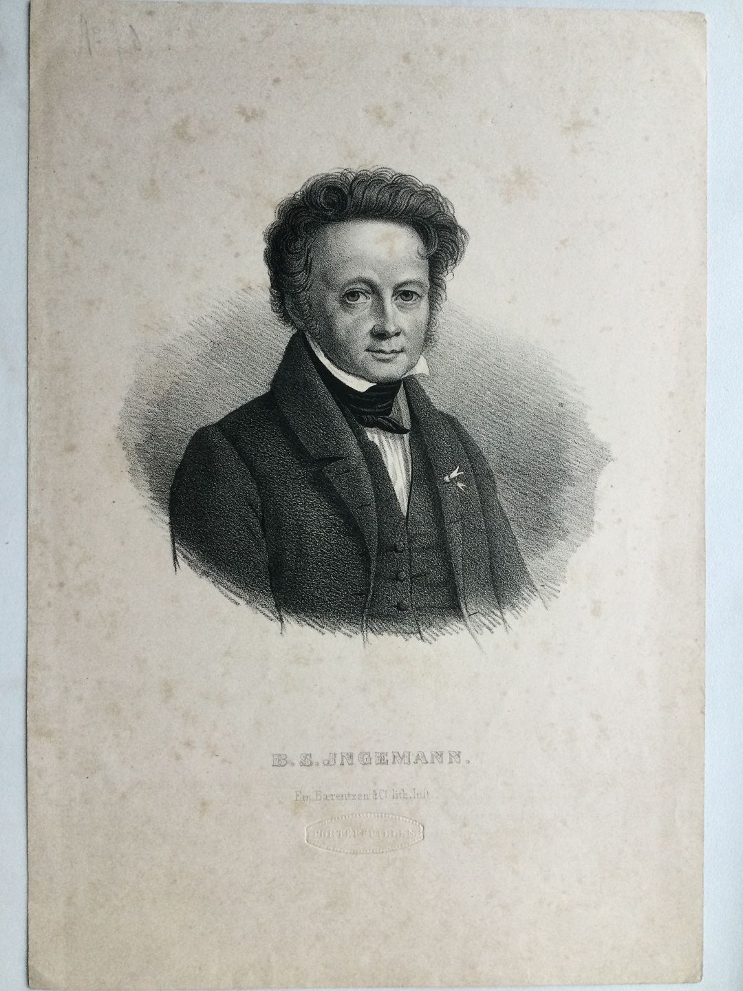 Litografi af Em. Bærentzen - Portræt af Salmedigteren B.S. Ingemann