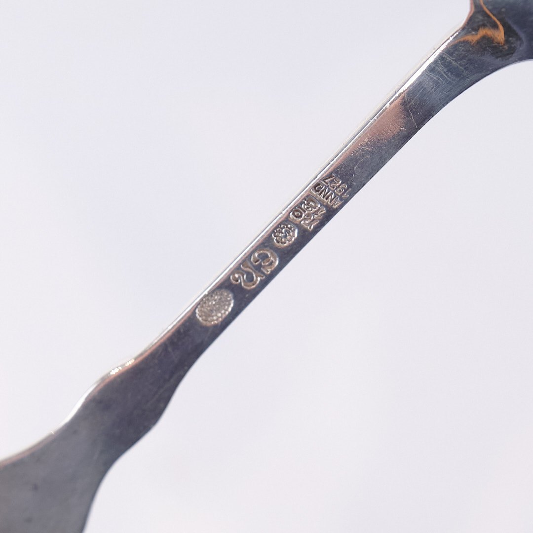 Teske i mønster nr. 18 af Evald Nielsen. Tretårnet sølv, stemplet.