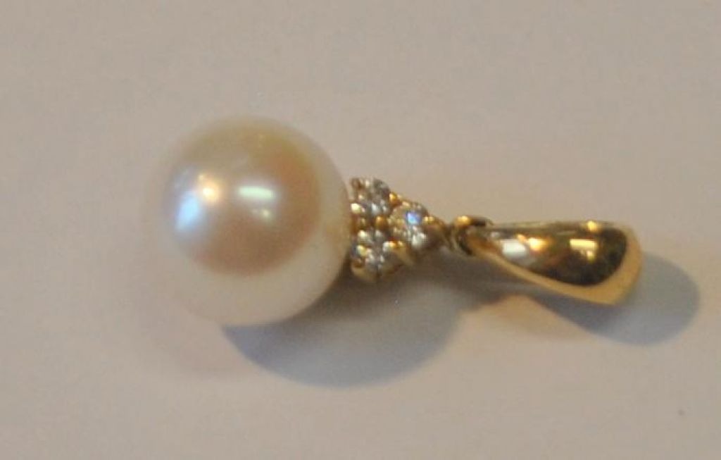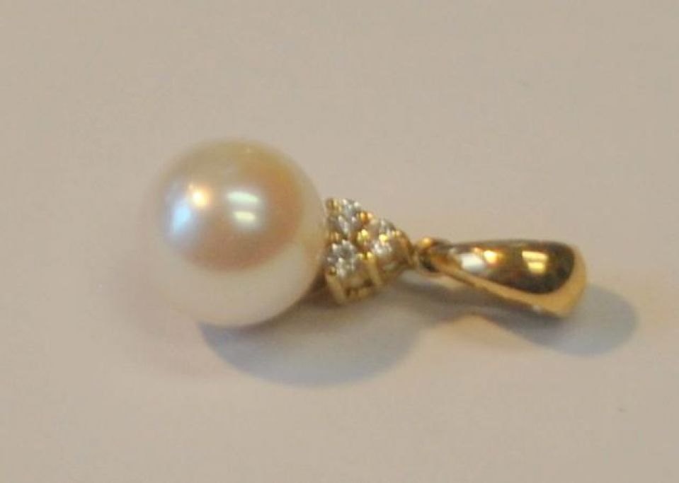 14 karat guldvedhæng med perle og tre slebne brillanter, Kranz & Ziegler Aps