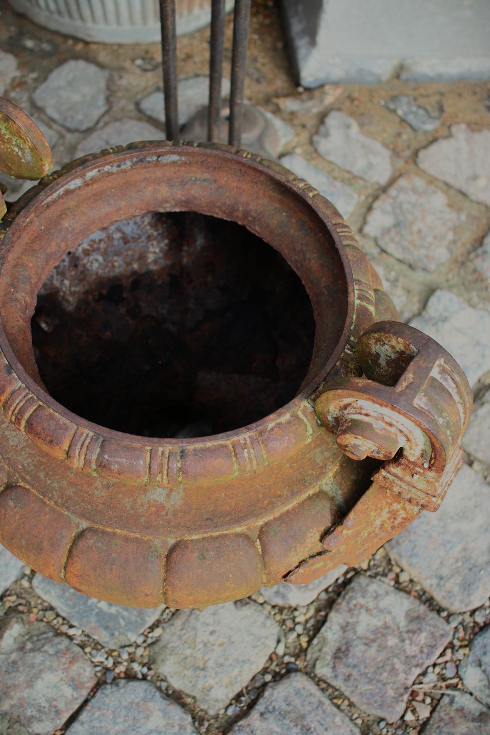 Store , franske 1800 tals jern krukker med hanke og en rigtig fin gammel patina...