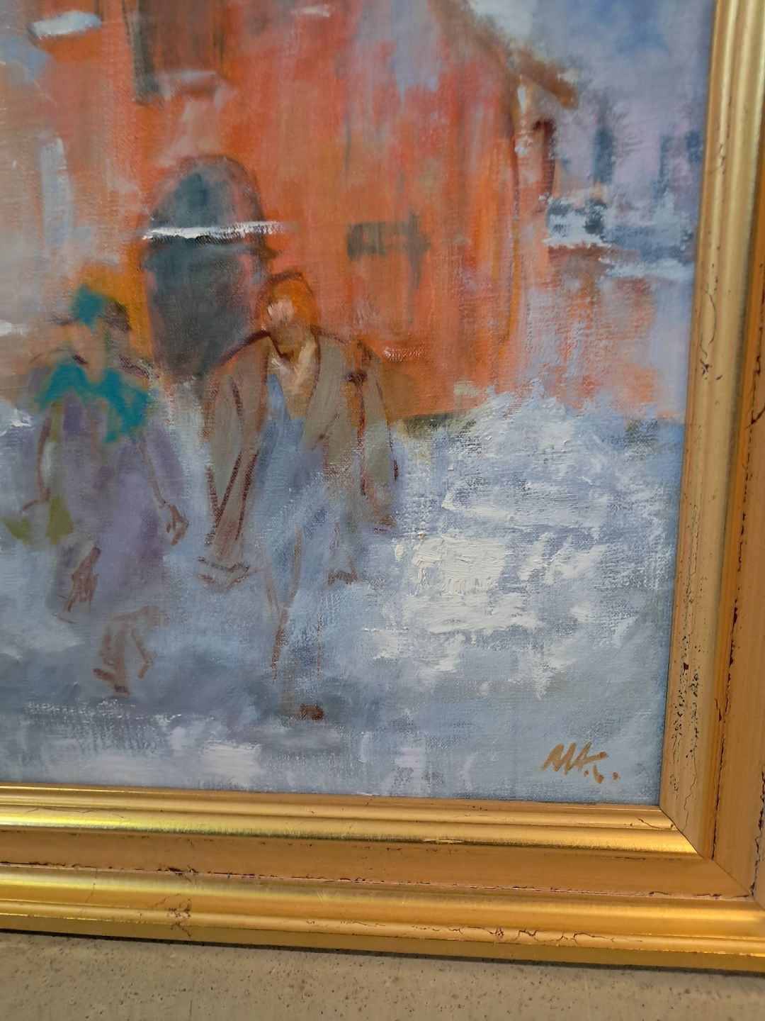 Maleri af Dragør Havn i guldmalet ramme, af : Mogens Amdi Thorsen (1924-2016)