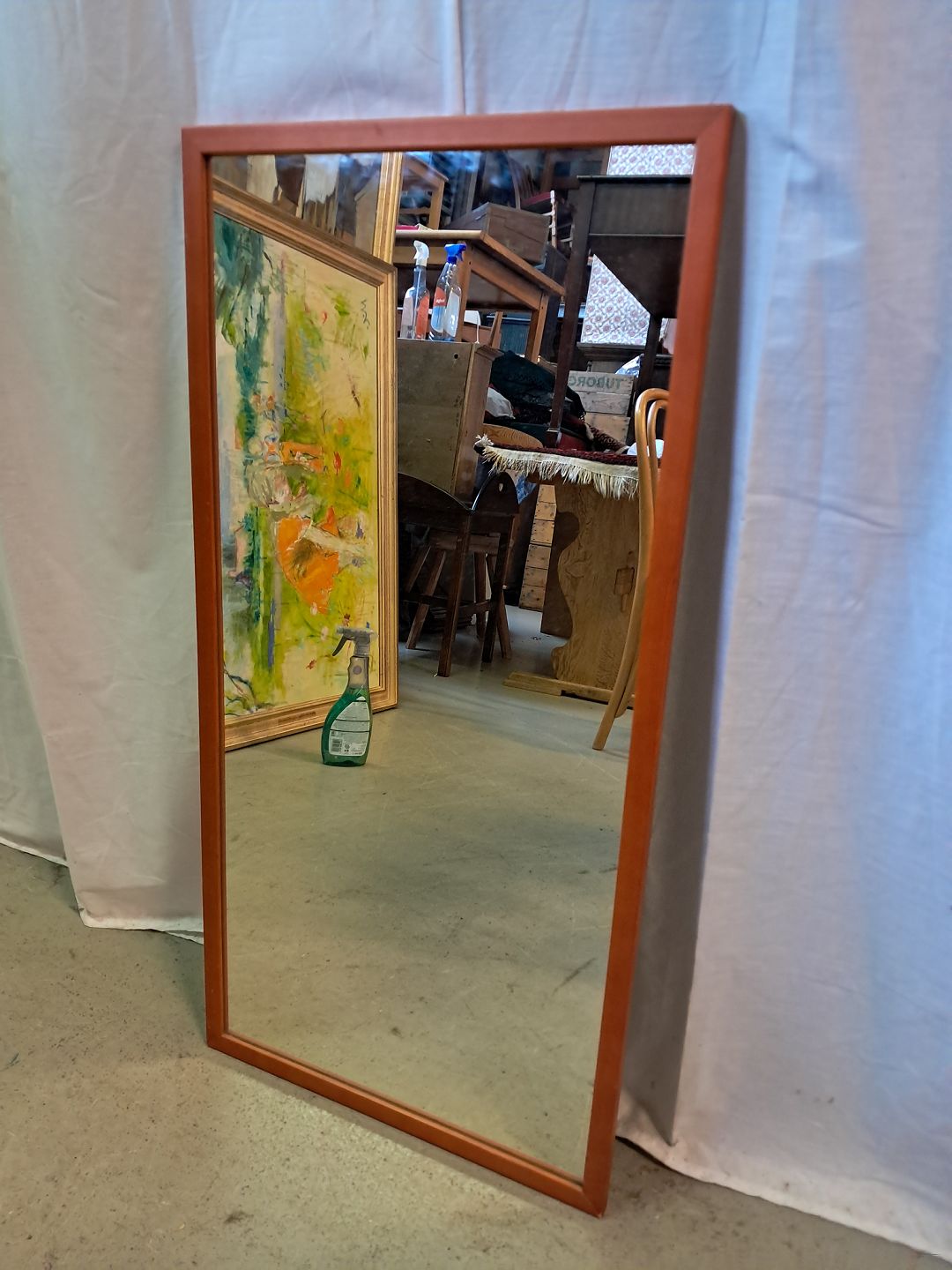 Spejl i massivt og bejdset fyrretræ, fra 1980erne.