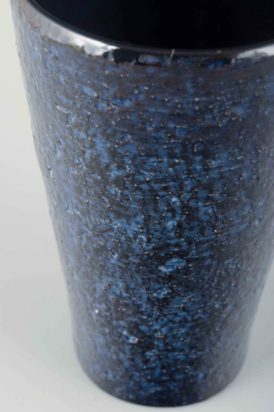 Cylindrisk vase i stentøj med dyb, mørkeblå glasur med let krystallinsk struktur.