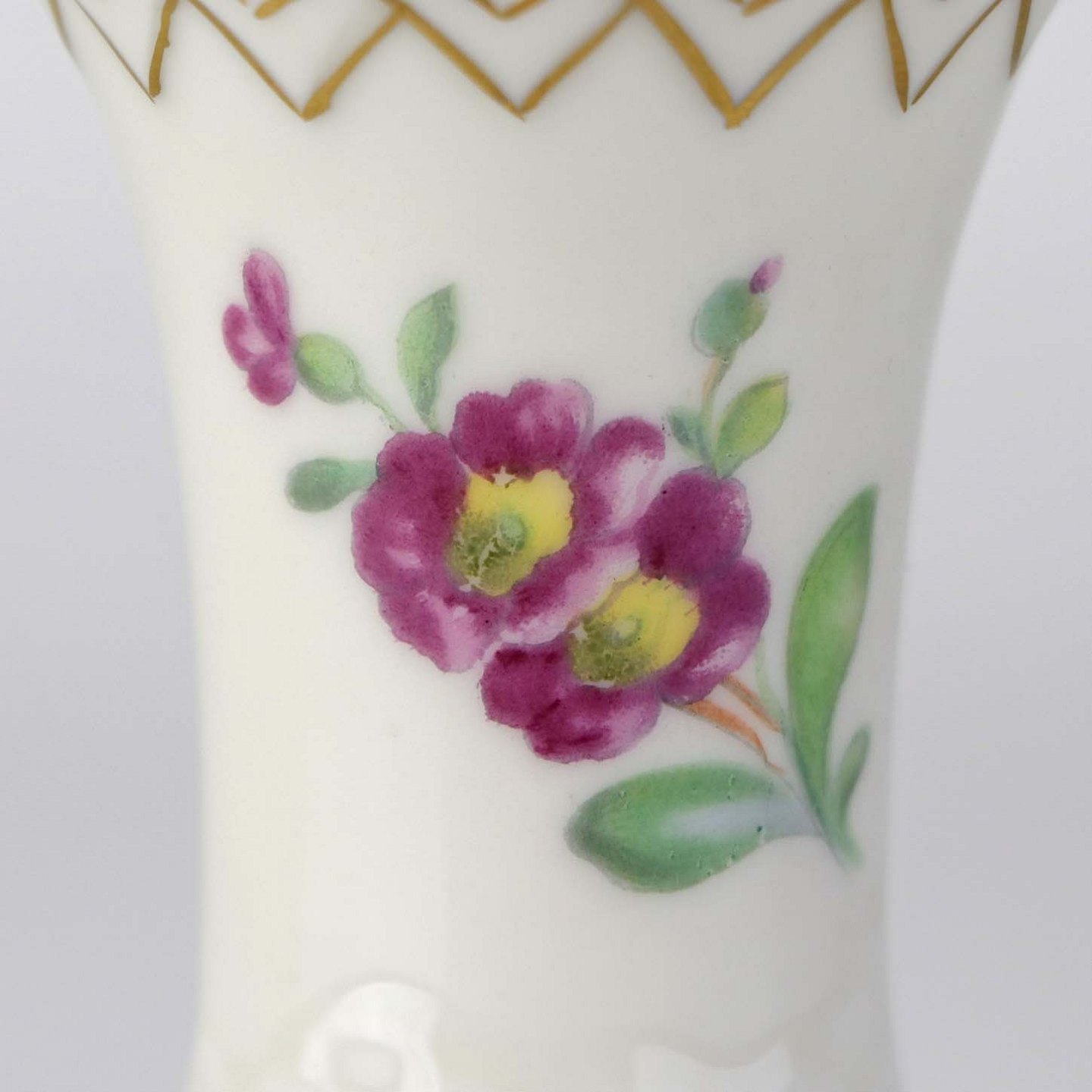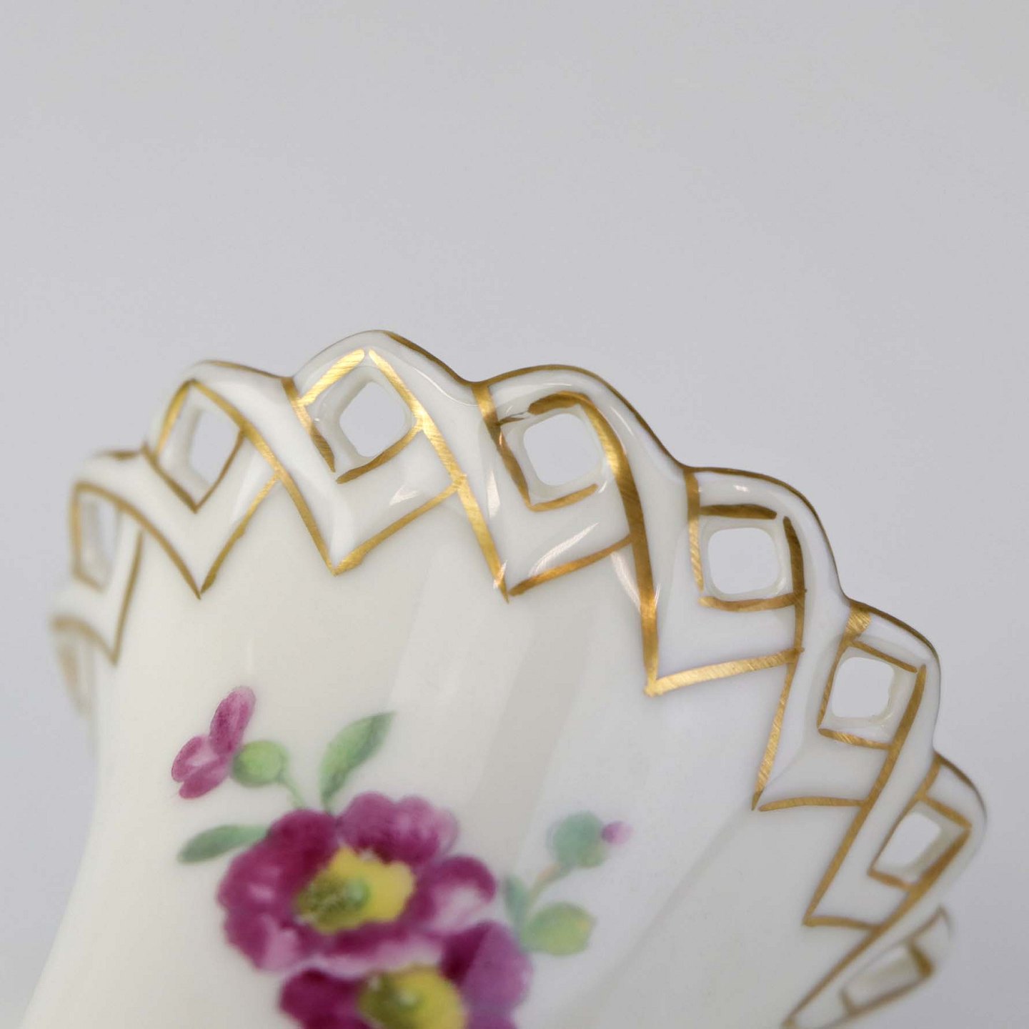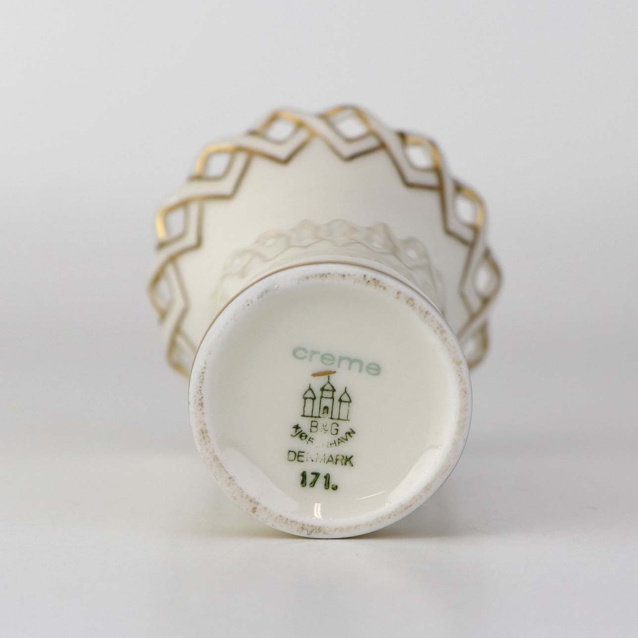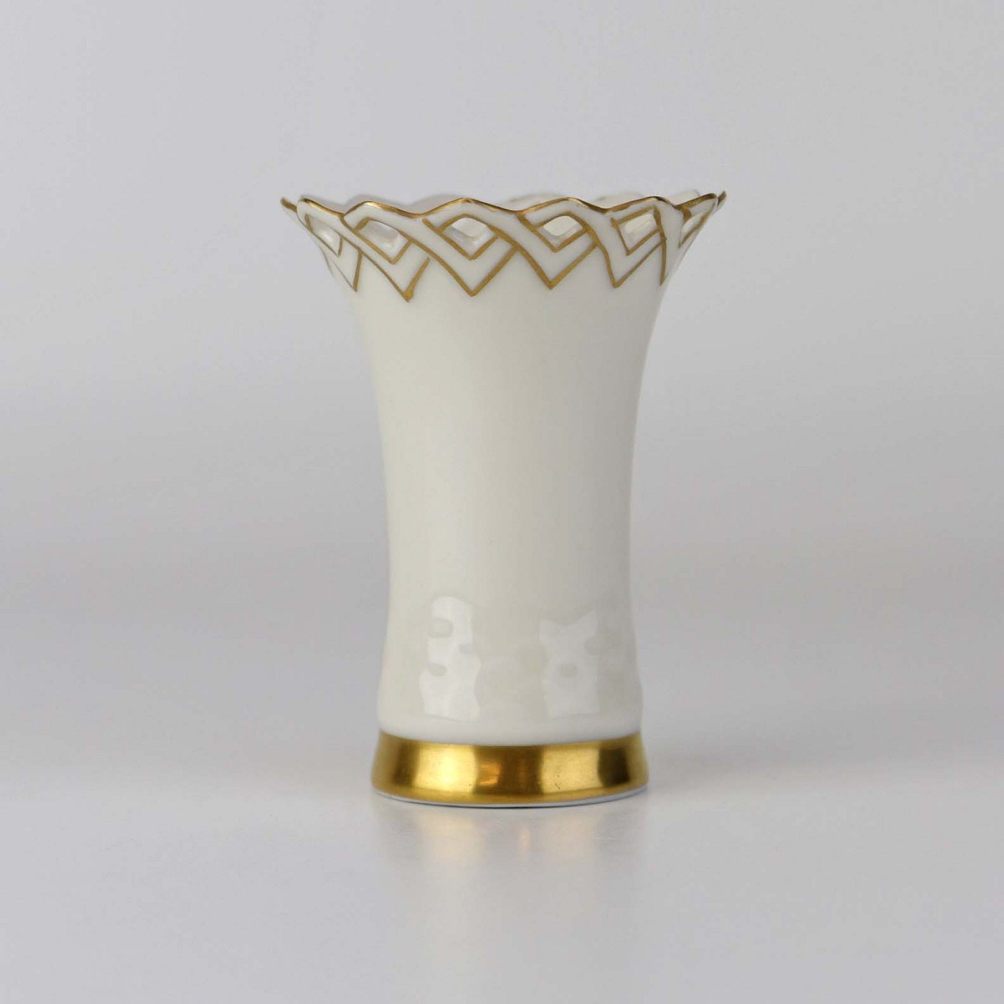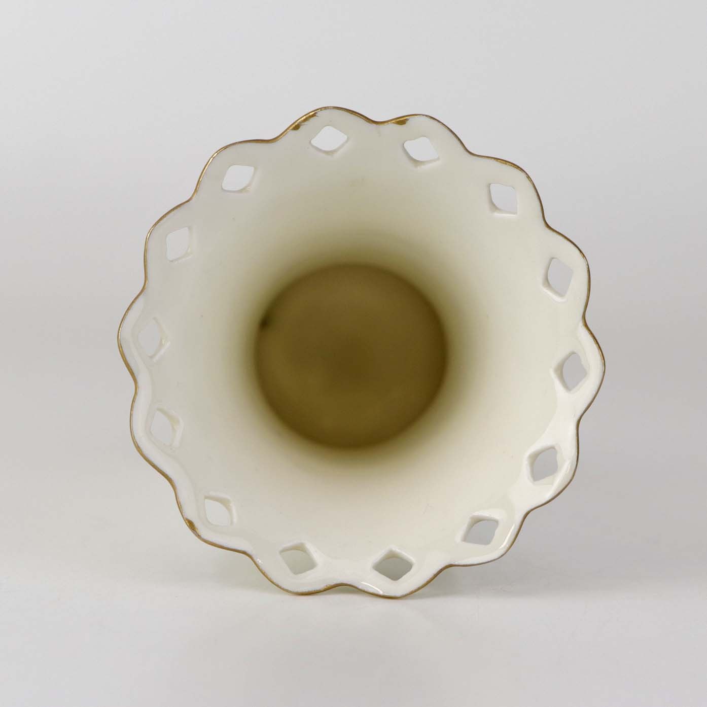 Lille vase i porcelæn med gennembrudt kant fra stellet Saksisk blomst creme. Nr. 171