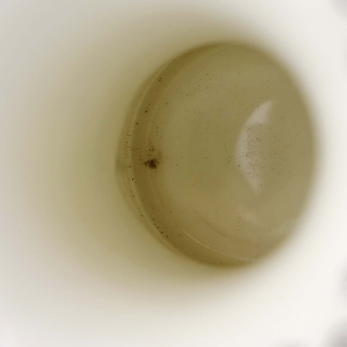 Fremstår med urenheder i bunden samt mindre ujævnhed ved guld kant belægningen