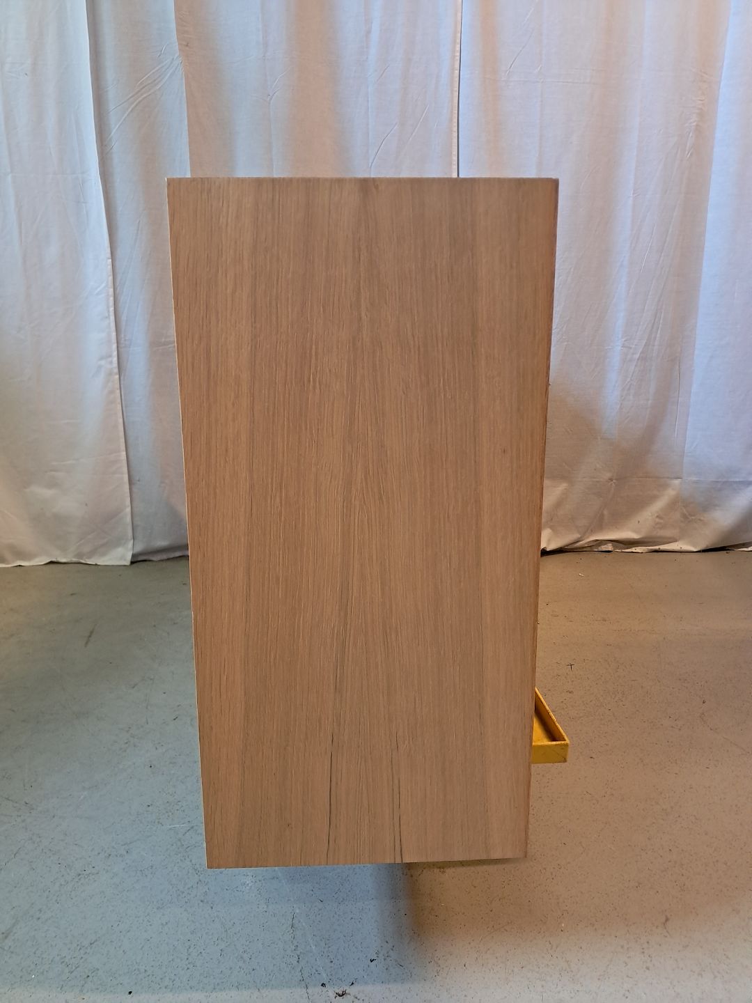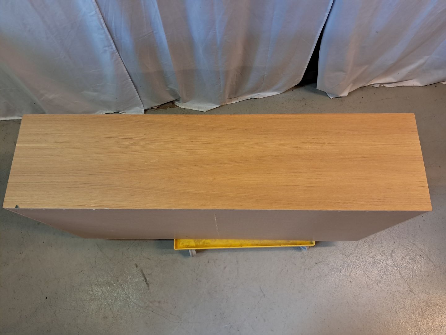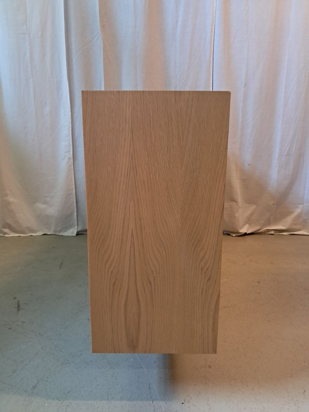 Reol i fineret egetræ med glaslåger, fra 1990erne.