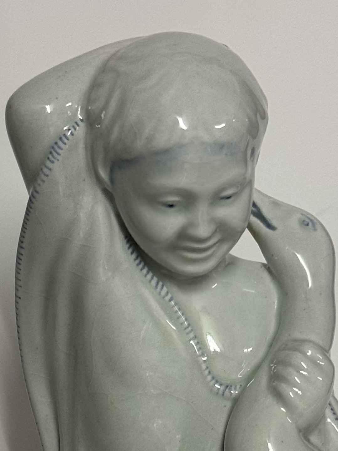 Michael Pedersen: Figur med pige og gås for Aluminia fabrikken 1918