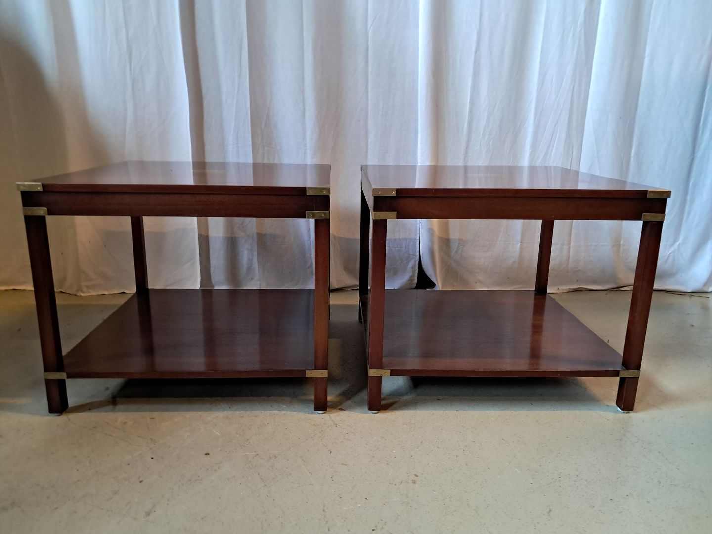 2 Military borde i fineret mahogni, fra 1980erne.
