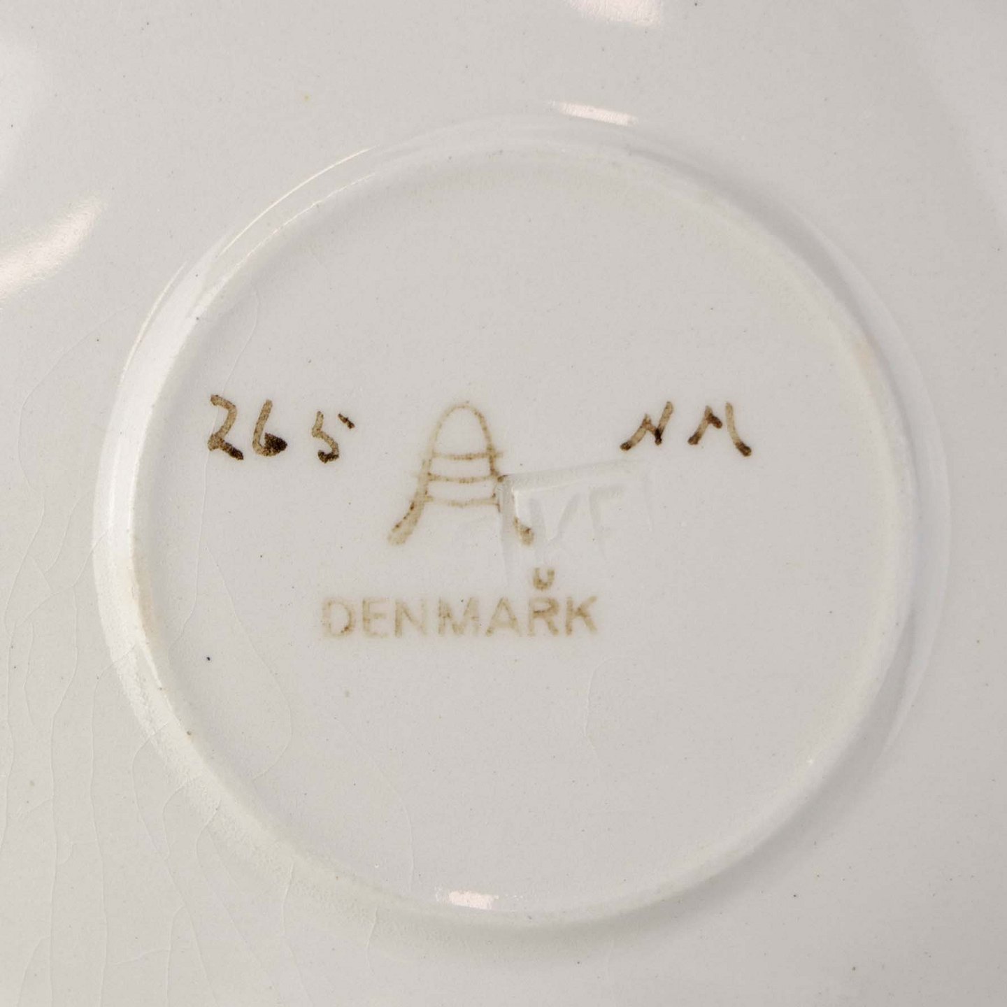 Fremstår med krakkeleringer og mindre ujævnhed i glasuren på bagsiden.