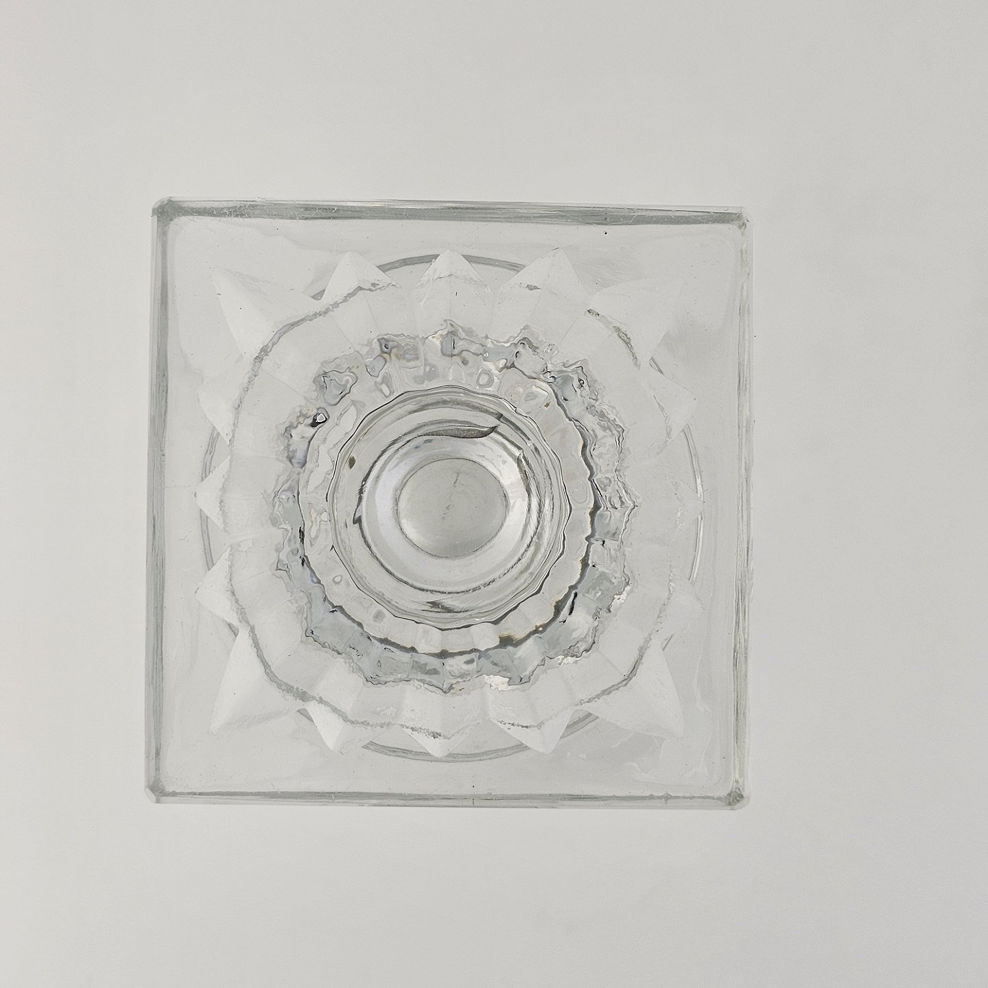 Vinglas med firkantet fod i mundblæst presset glas ætsning med motiv af Tivoli med bogstaverne IV og 1917