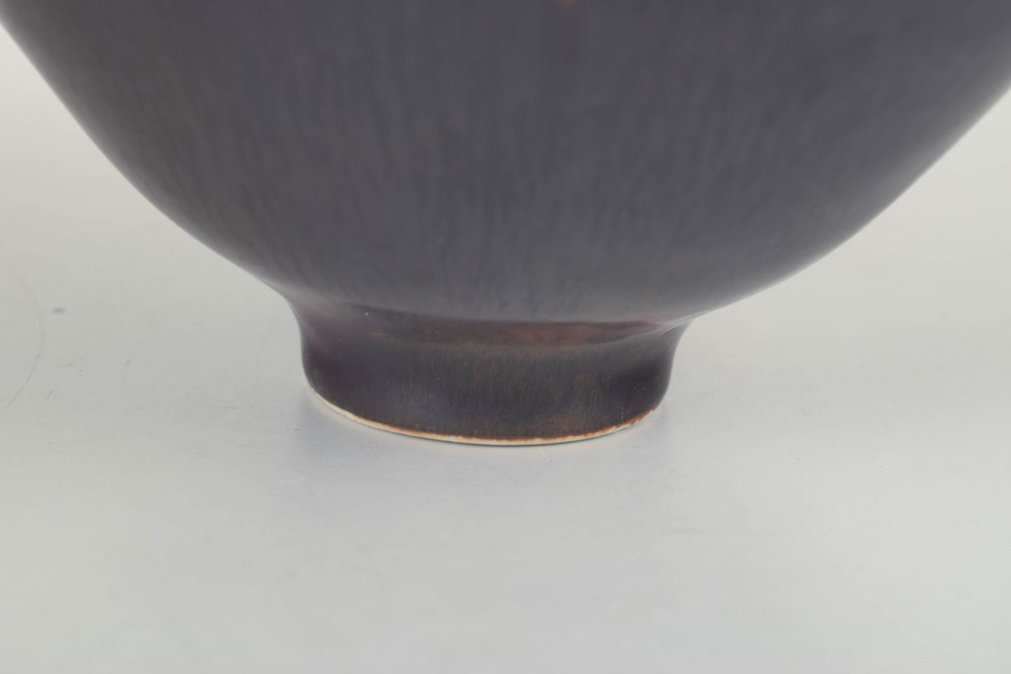 Elegant kegleformet skål i stentøj med mat, mørk glasur i gråbrune toner og diskret fod. Et fint eksempel på Stålhane’s minimalistiske formsprog og præcise proportioner.