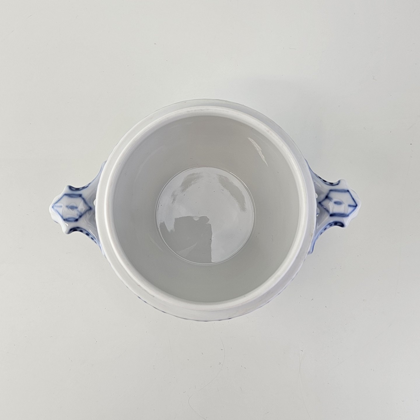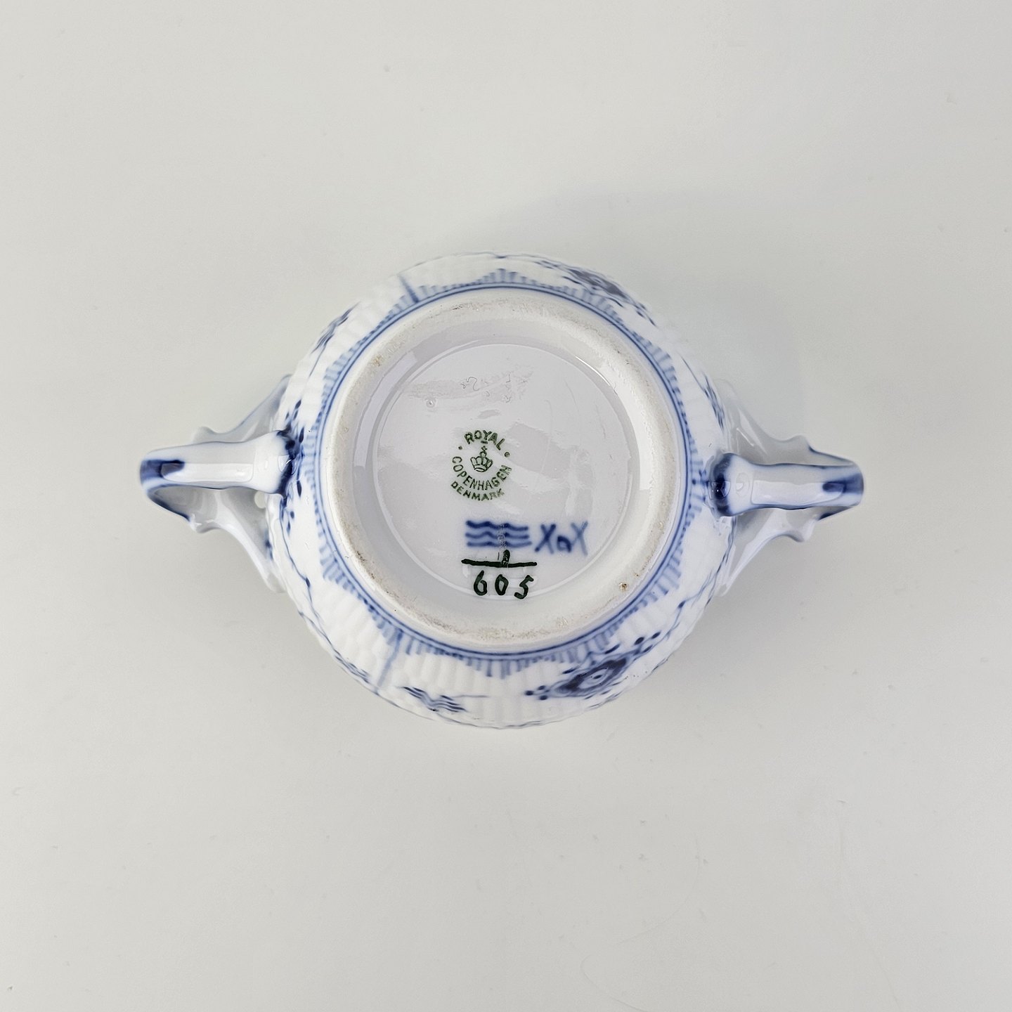 Sukkerskål i kongeligt porcelæn fra stellet Musselmalet Halvblonde