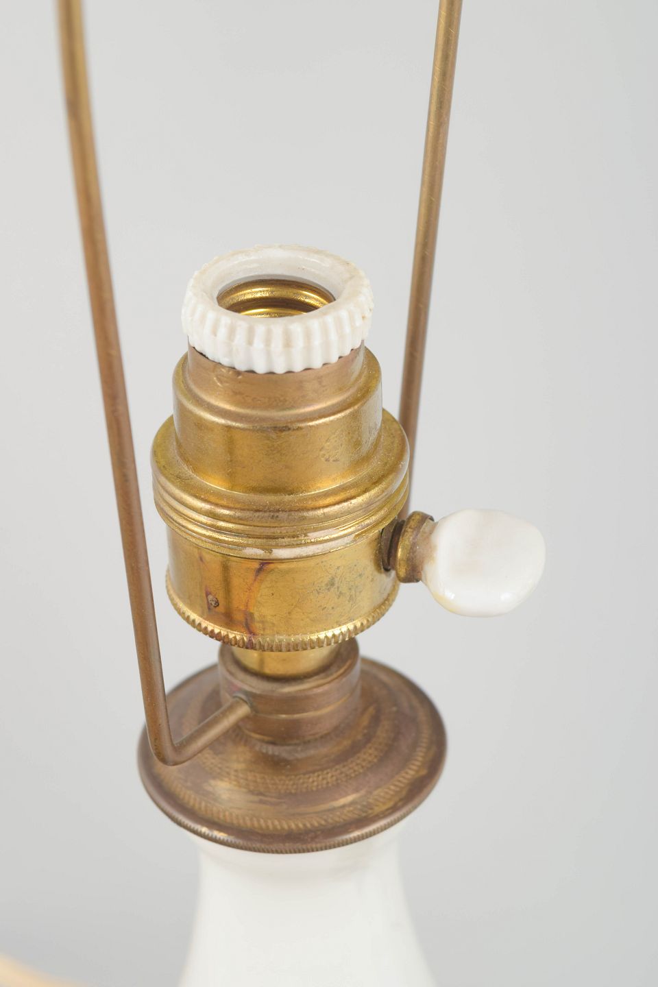 Par små bordlamper i porcelæn og messing, begyndelsen af 1900-tallet.
