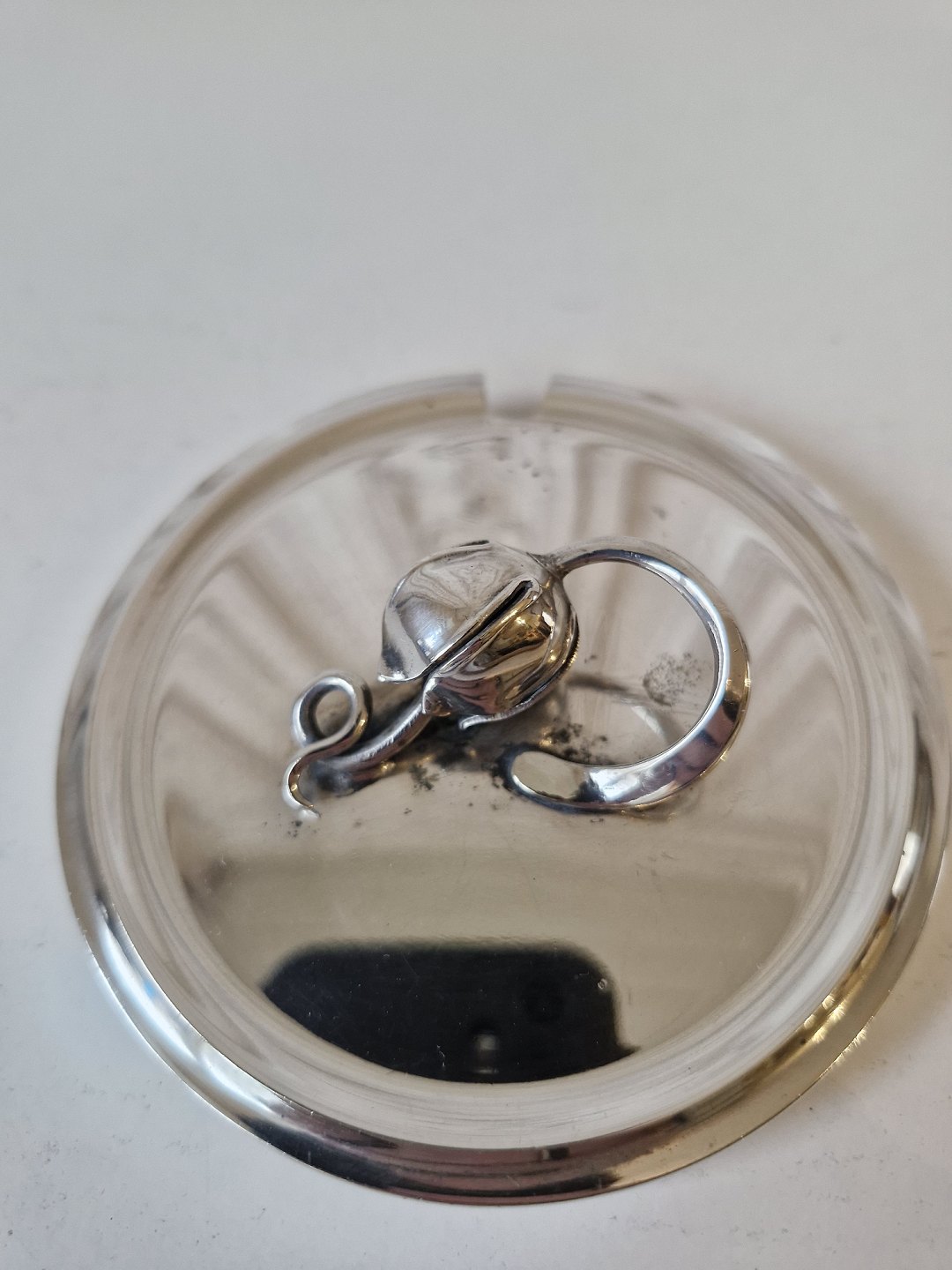 Forsølvet låg til marmeladekrukke dekoreret med rosenknop