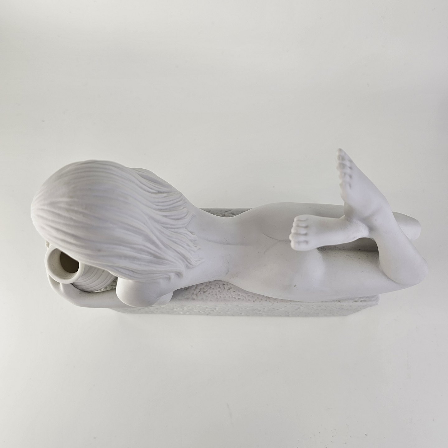 Figur i hvidt kongeligt porcelæn med motiv af stjernetegnet vandbæreren og titlen Aquarius