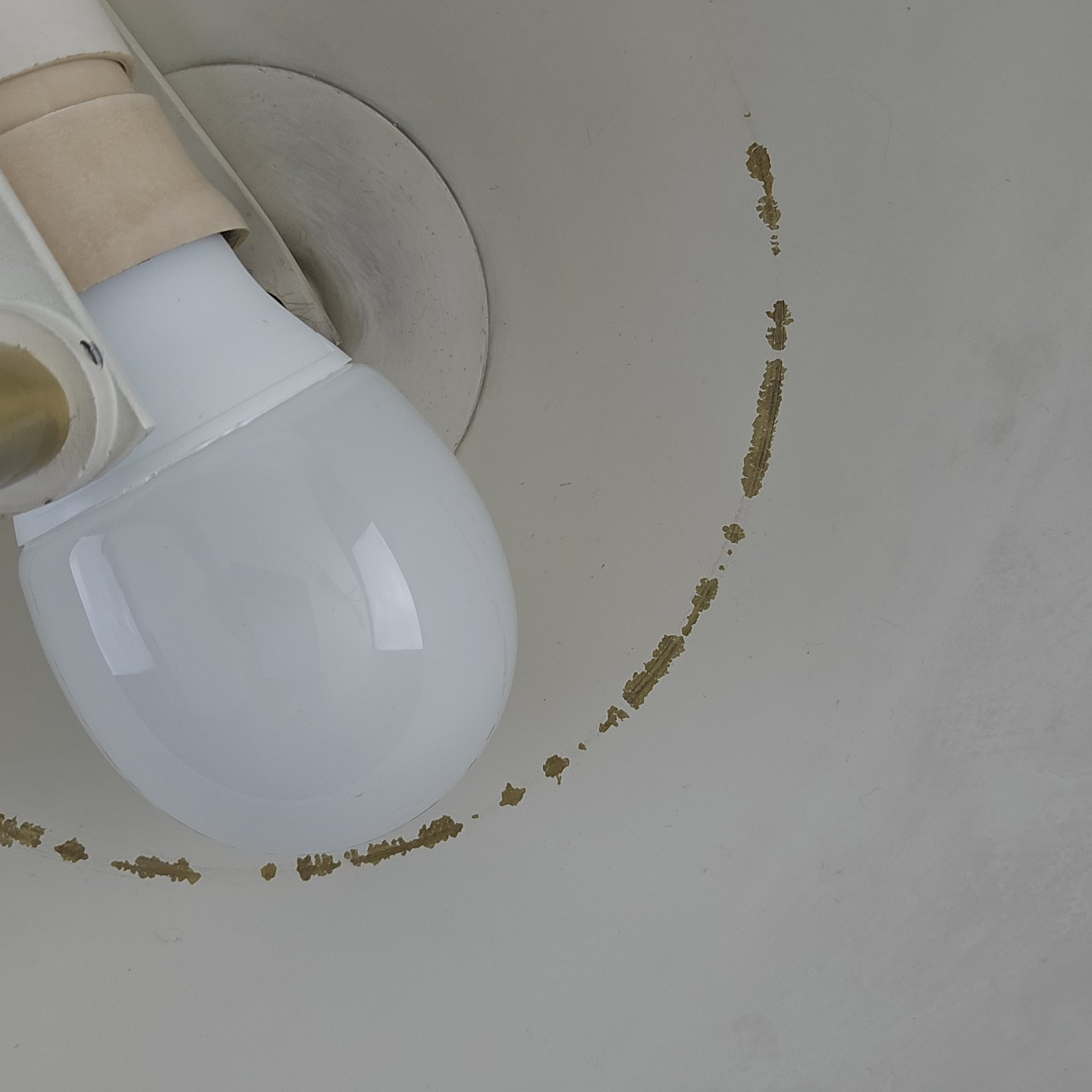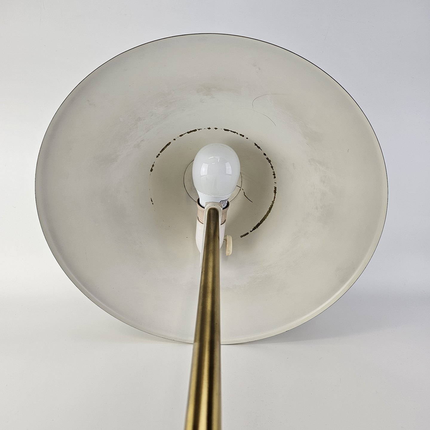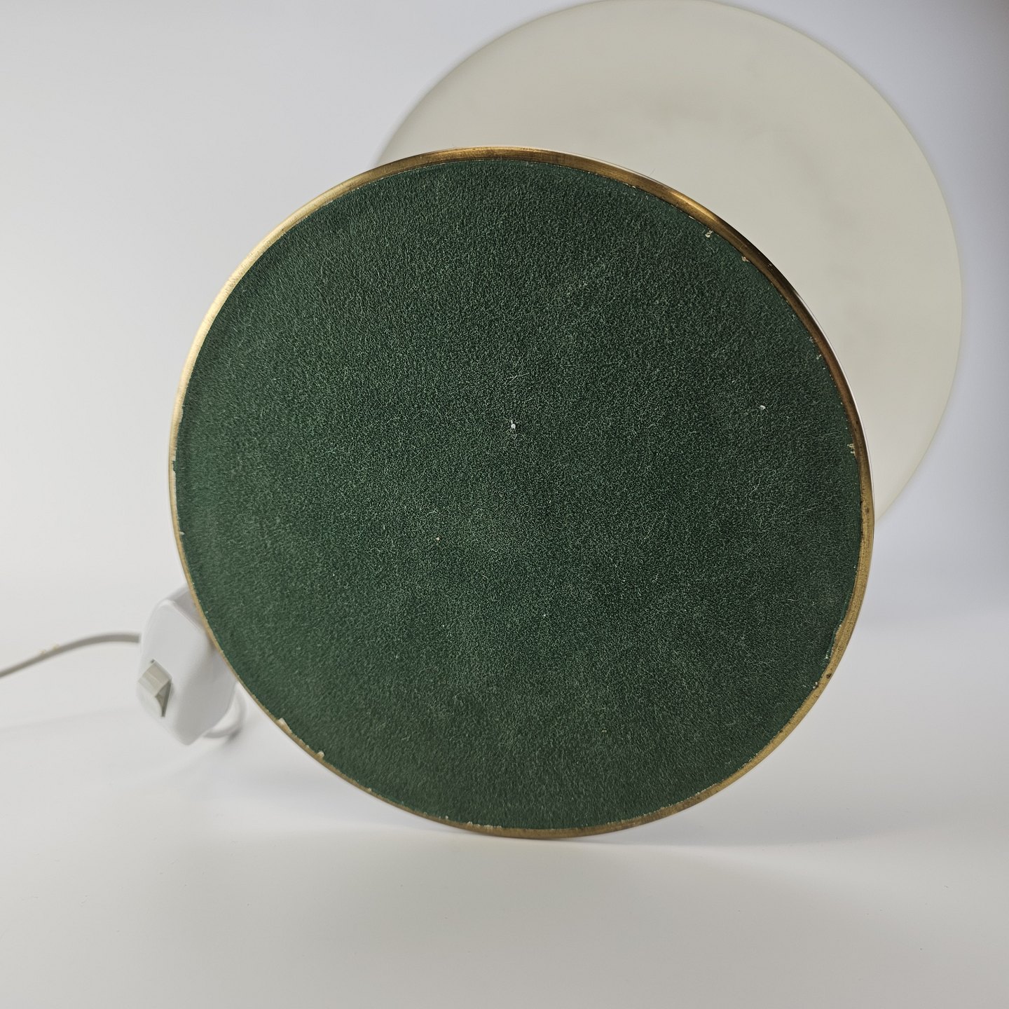 Fremstår med brugsspor i form af pletter på foden og afmærkninger på indersiden af skærmen