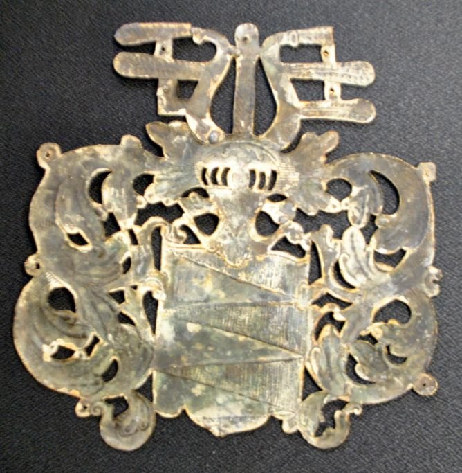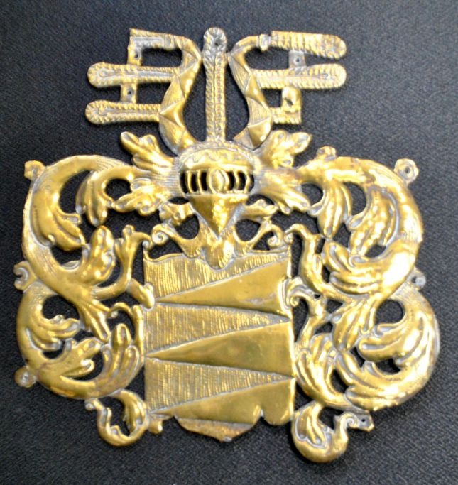 Messingskjold med adelsvåben, 17.-18. årh. Danmark.