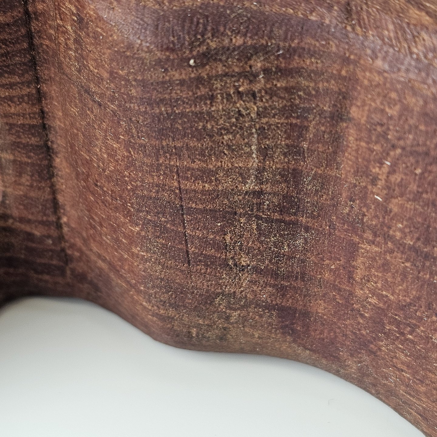 Fremstår med brugsspor i form af små hak, ridser og skrammer i overfladen, samt en streg bag et af ørerne