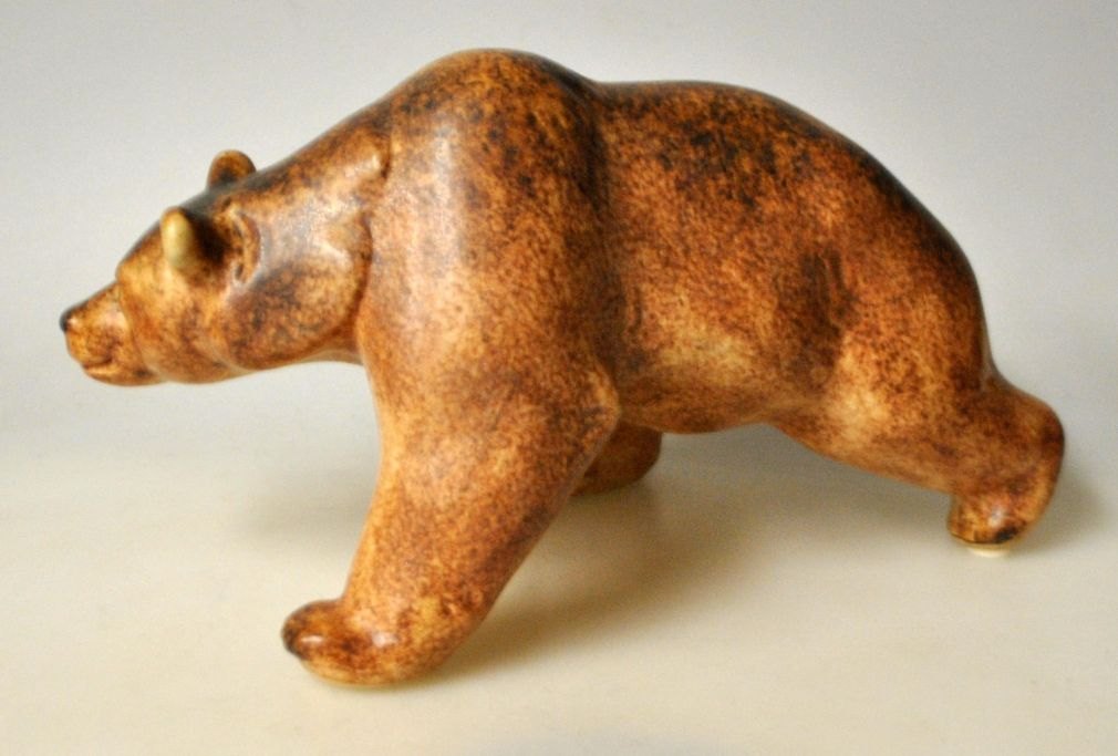 Hald, Peder (1892 - 1987) Danmark: En bjørn. 5975. Brunglaseret stentøj. Udført for Micahel Andersen & Søn, Bornholm. Signeret: HALD. L.: 23 cm. H.: 13 cm.