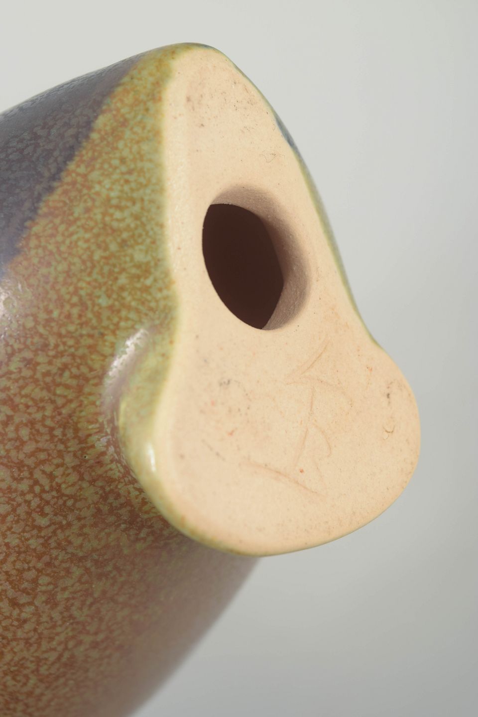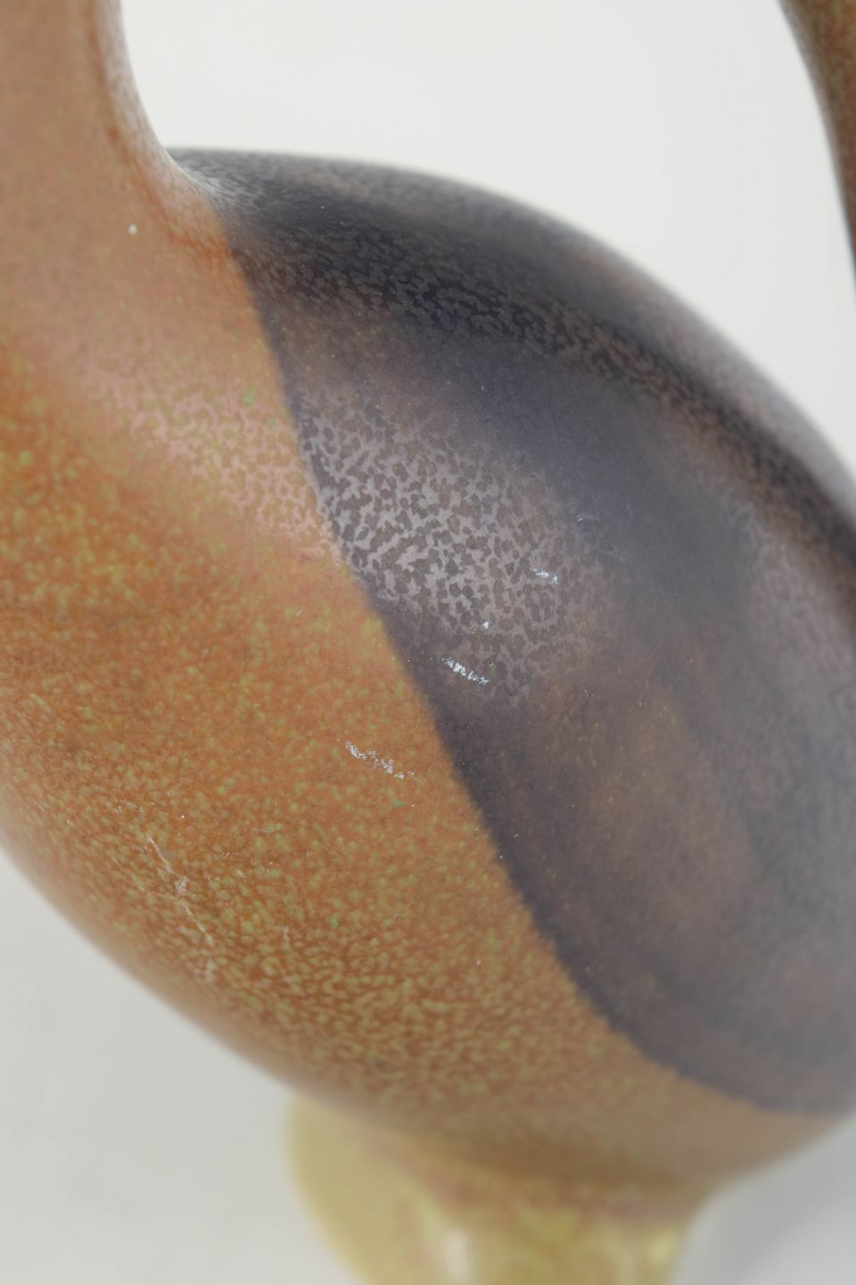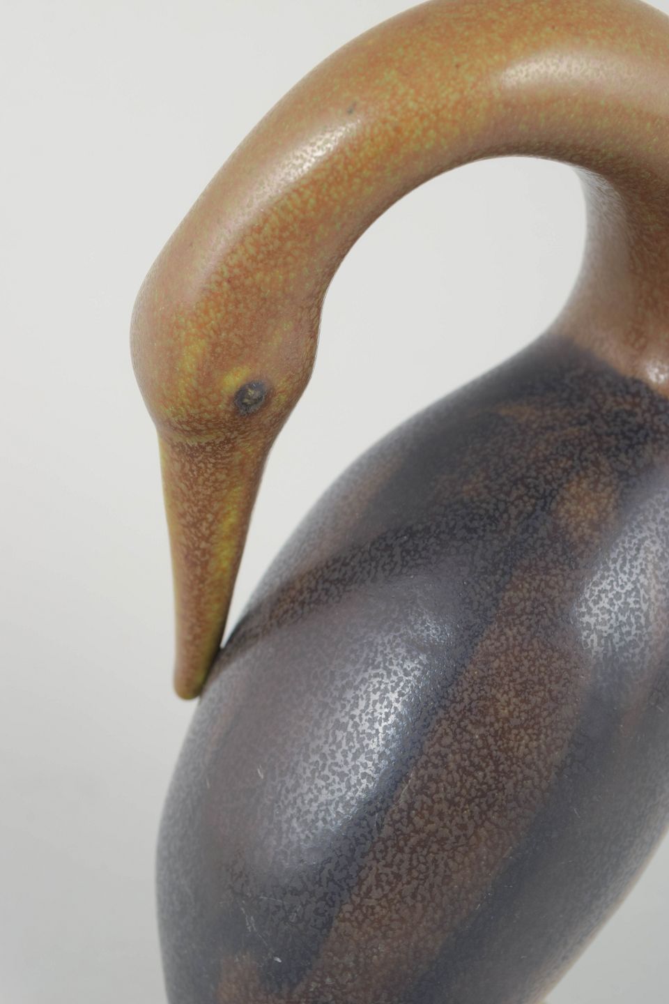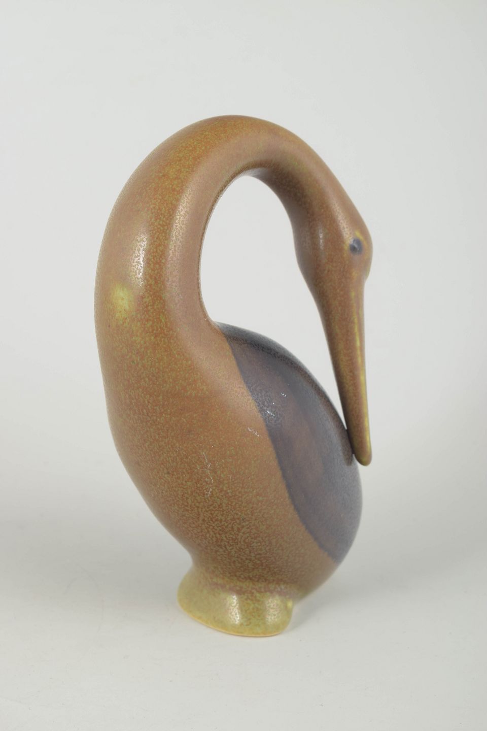 Sjælden fuglefigur i stentøj med den karakteristiske organiske form og dybe, nuancerede glasur, som kendetegner Basses arbejde. Den bløde modellering og de matte jordfarver giver figuren et roligt, skulpturelt udtryk.