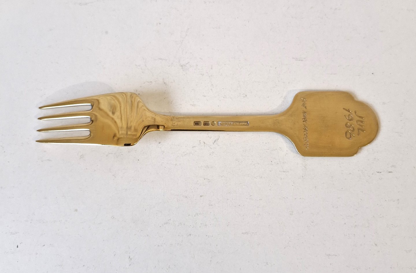 A.Michelsen julegaffel i forgyldt sterlingsølv og emalje fra 1986