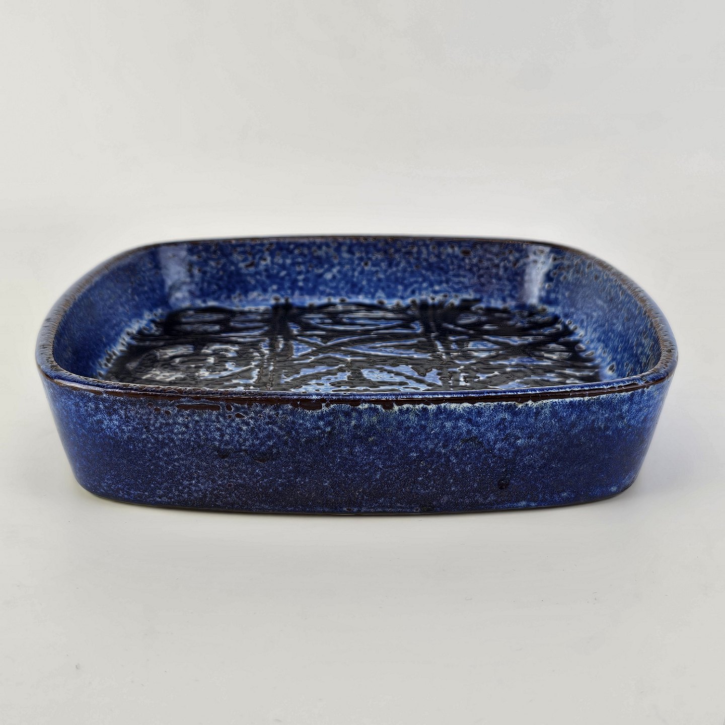 Firkantet skål i fajance fra Baca serien med mønster i blå og sort