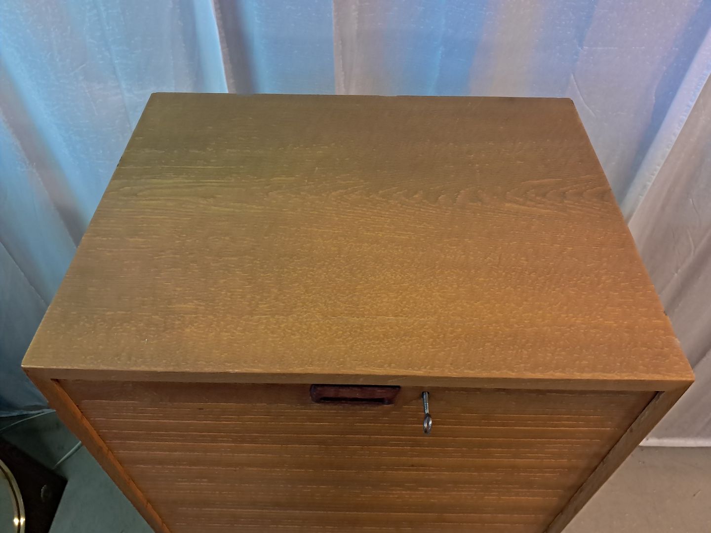 Jalousiskab i fineret egetræ, fra 1970erne.