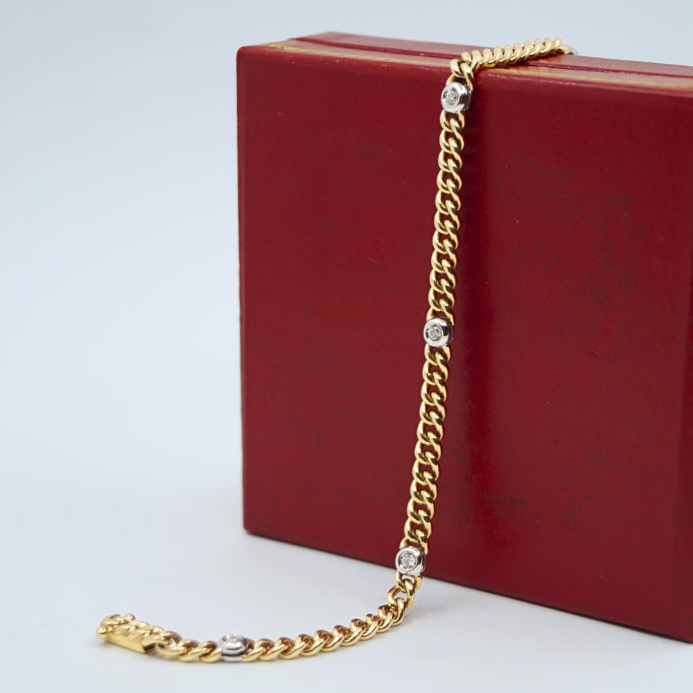 Panserarmbånd i 14 kt. guld prydet med diamanter fattet i hvidguld