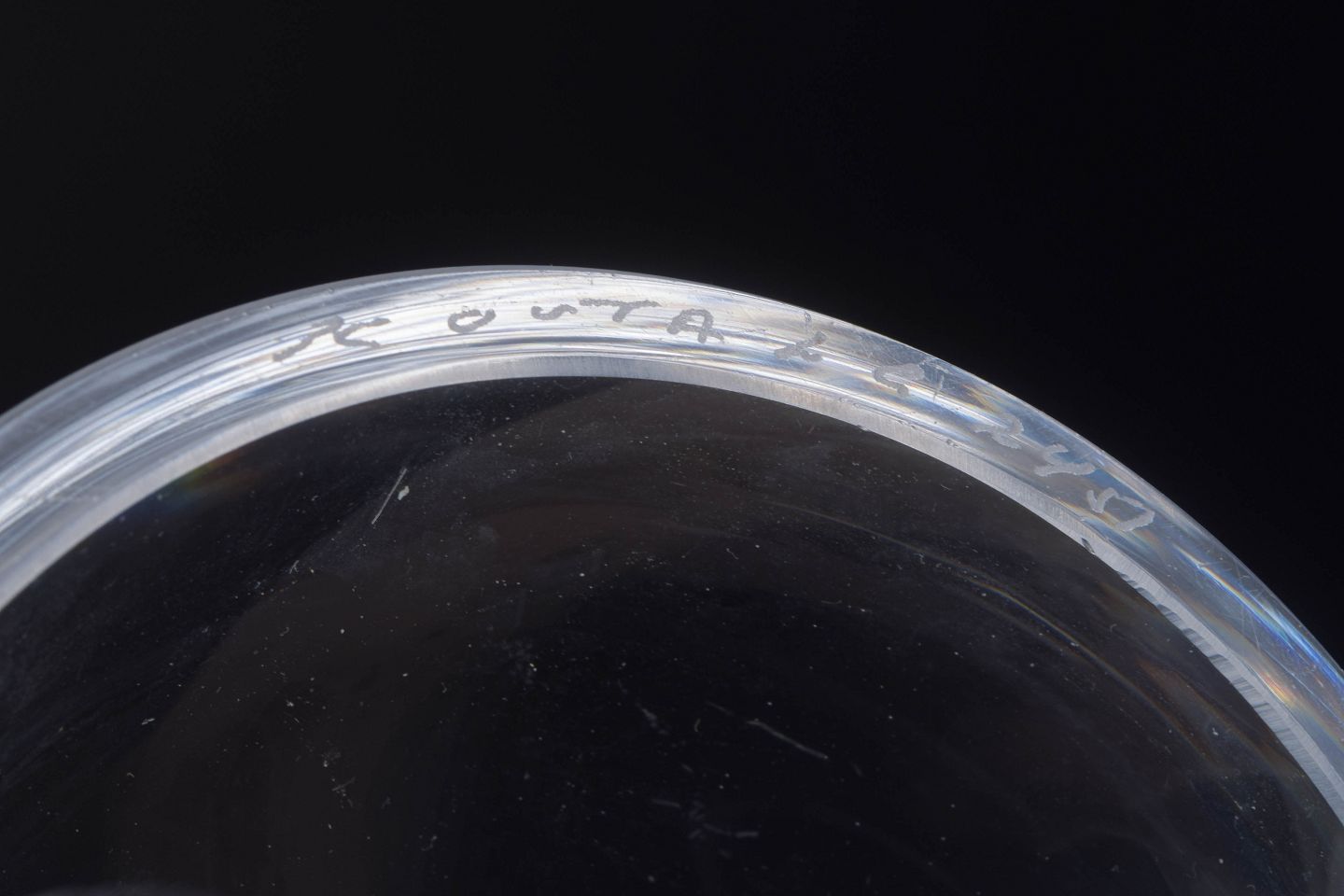 Kosta glasværk, grundlagt i 1742, er et af Sveriges mest traditionsrige glashuse. Gennem det 20. århundrede udviklede Kosta en række dekorative teknikker, herunder indlagte strøg og mønstre, der gav glasset dybde og bevægelse. Værker som denne model 52451 viser glasværkets kombination af teknisk kunnen og tidssvarende design.