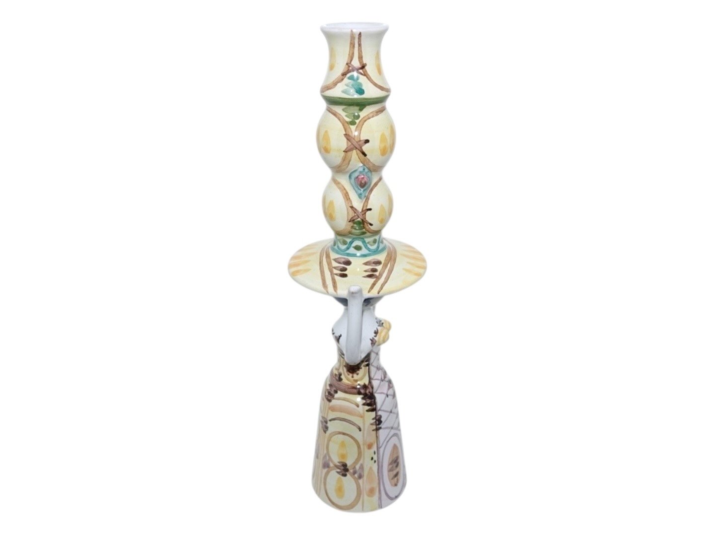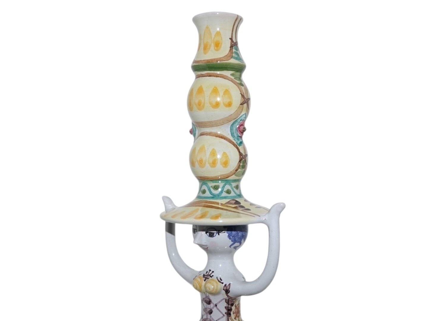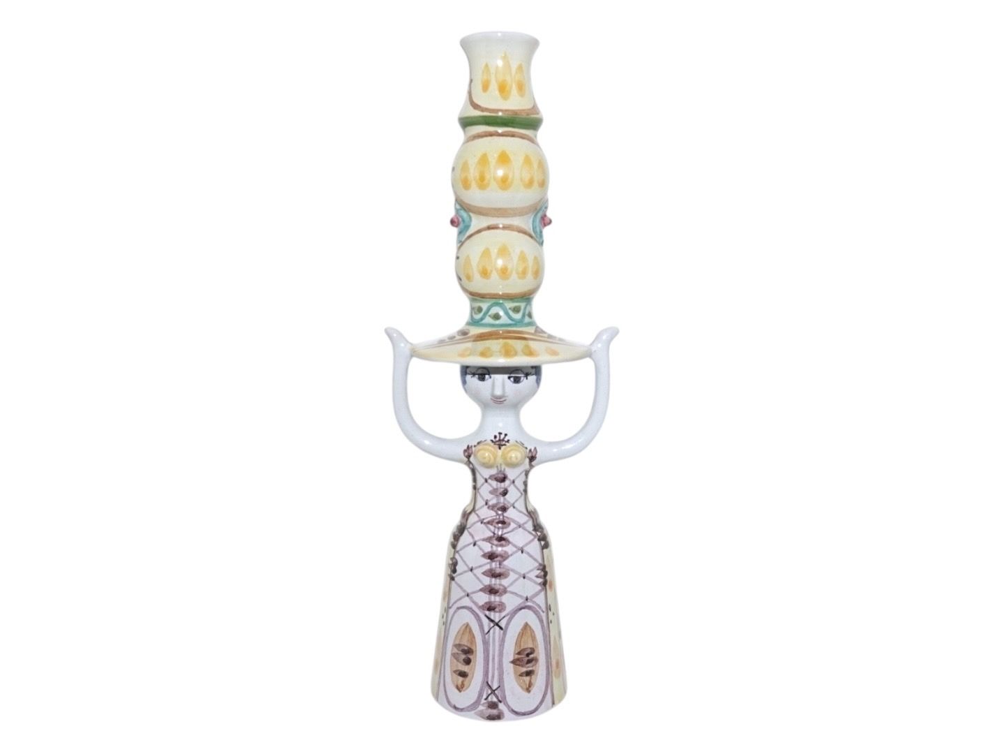 Bjørn Wiinblad keramik, høj figur af dame i gule farver fra 1974.
