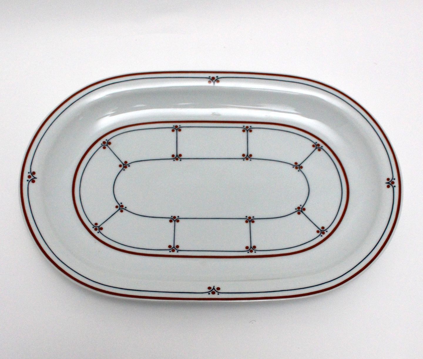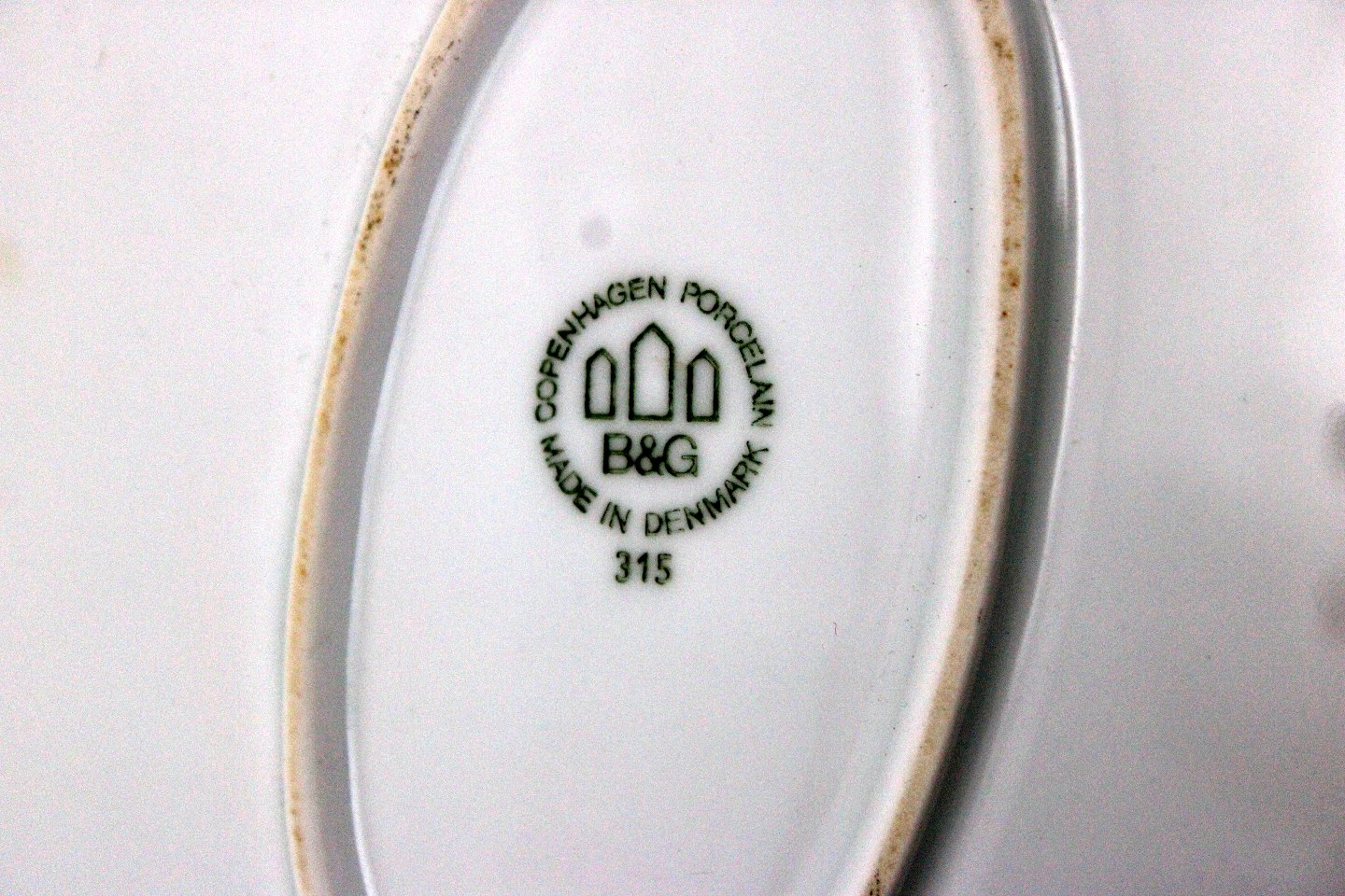 Bing & Grøndahl, Serveringsfad. Nr. 315. Designet af Martin Hunt. Længde 36 cm. Bredde 23 cm. II sortering. Almindelig brugsslid, brugsstreger. Pris: 400 kr. stk. Lager: 1