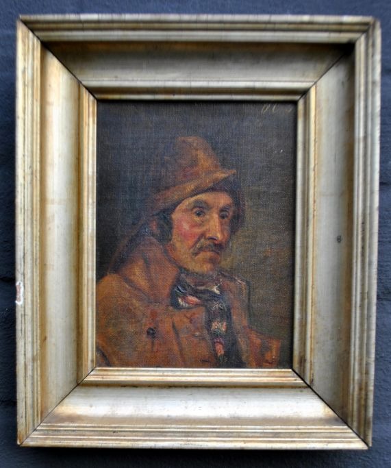 Carlsen, Oscar Conrad (1840 - 1864) Danmark: Portræt af en fisker. Olie på lærred/pap. Signeret: O.C 1856. 15 x 11 cm.
