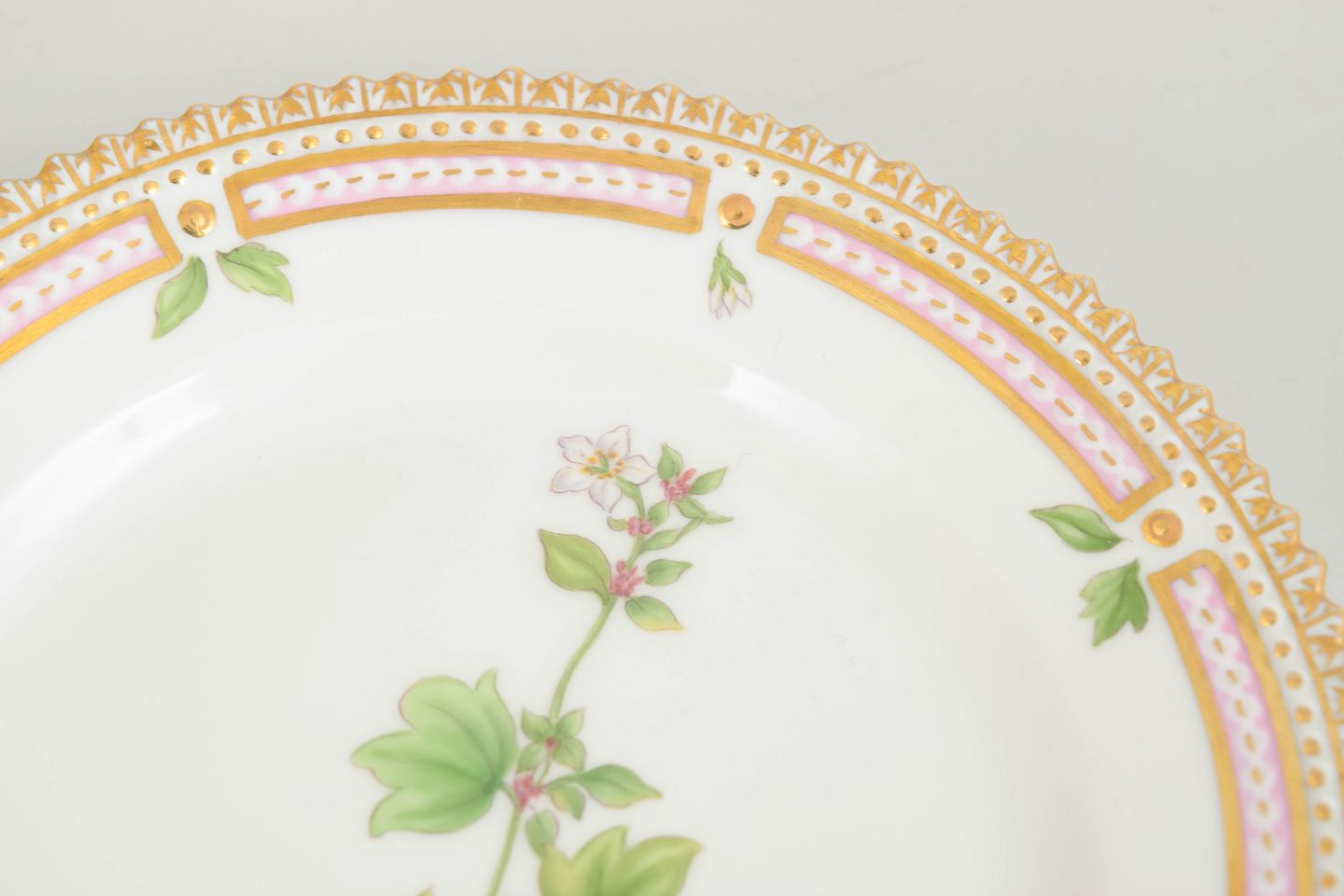 Bio: Flora Danica-stellet blev introduceret i 1790 og regnes blandt Royal Copenhagens mest prestigefyldte produktioner. Dekorationerne er baseret på det monumentale botaniske værk Flora Danica og er kendetegnet ved høj detaljerigdom og fremragende håndværksmæssig kvalitet. Mindre dele som sidetallerkener har traditionelt været anvendt til dessert eller mindre anretninger og er i dag eftertragtede samlerobjekter.