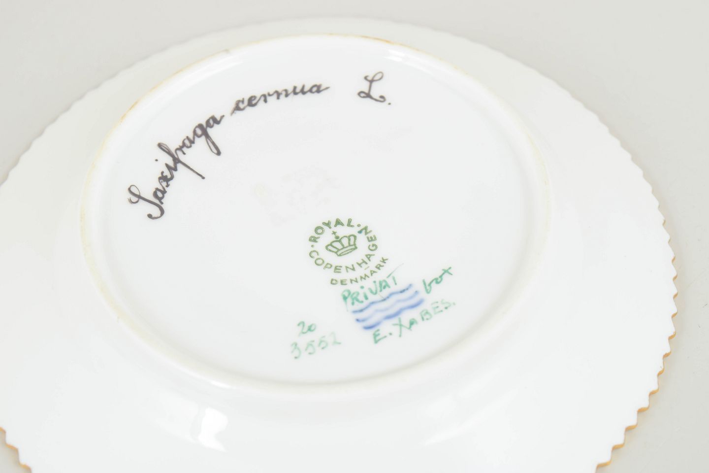 Elegant sidetallerken i det ikoniske Flora Danica-stel, håndmalet med botanisk motiv gengivet efter Flora Danica-værket. Tallerkenen er udført med den karakteristiske form og forfinede kant, som kendetegner stellets eksklusive og klassiske udtryk.