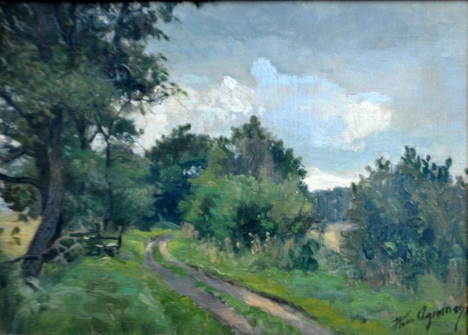 Agersnap, Hans (1857 - 1925) Danmark: En vej - sommer. Olie på lærred. Signeret. 36 x 53 cm.