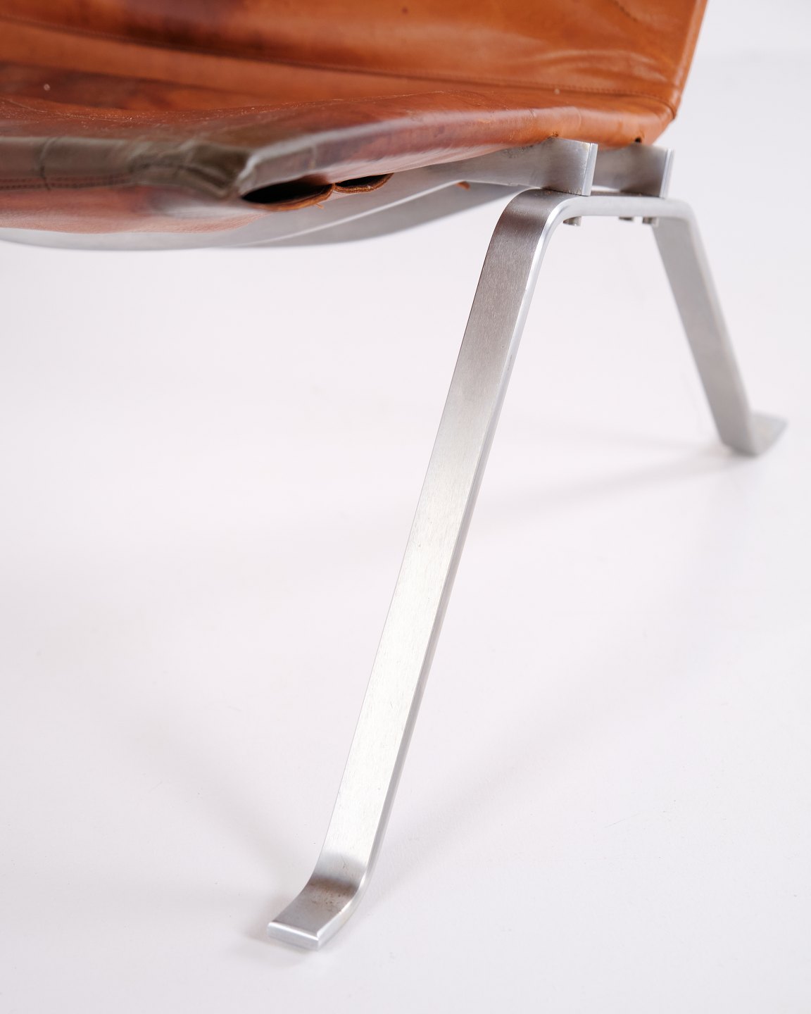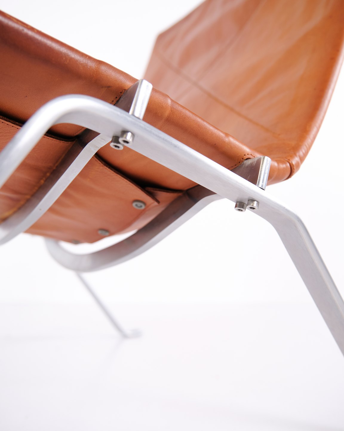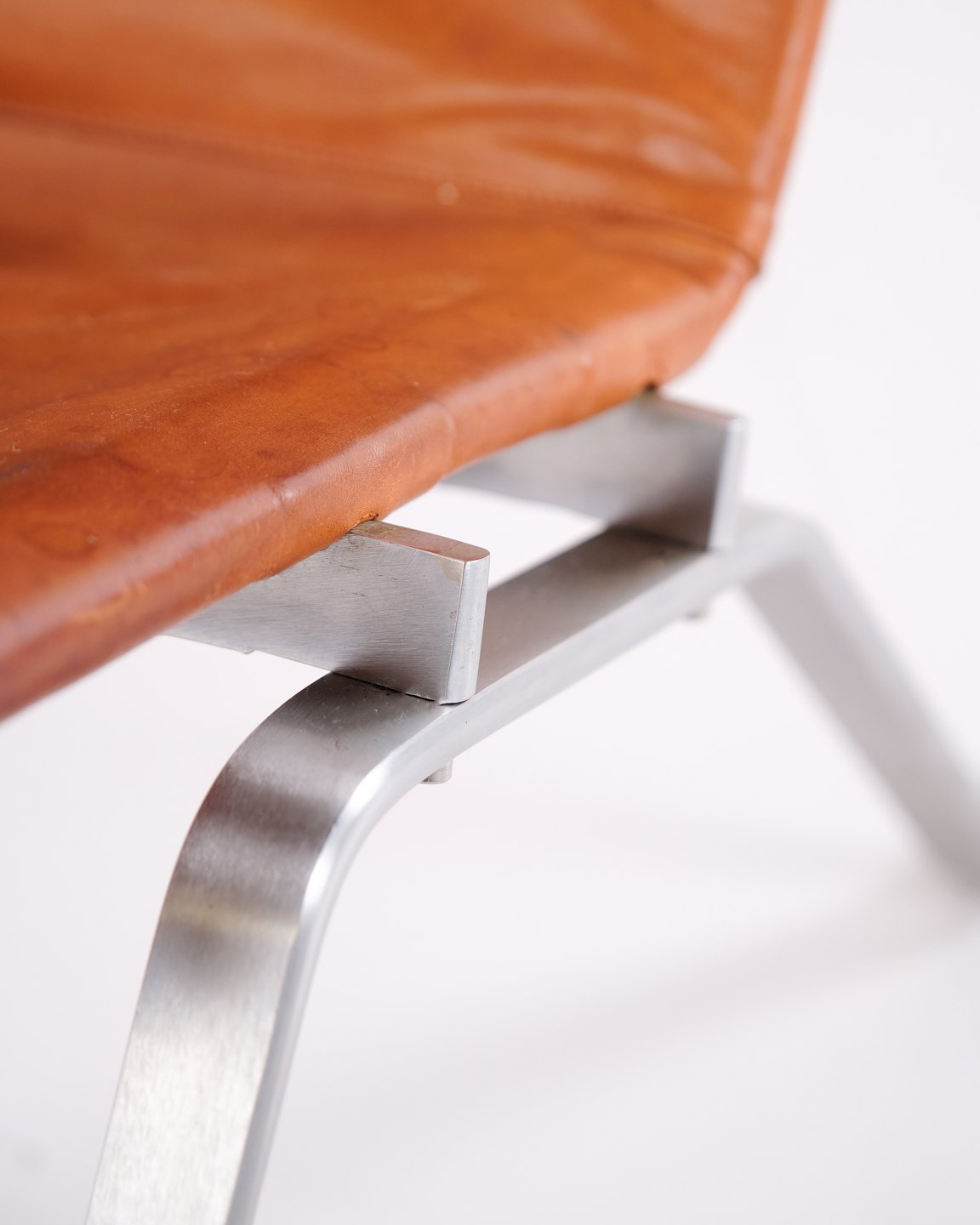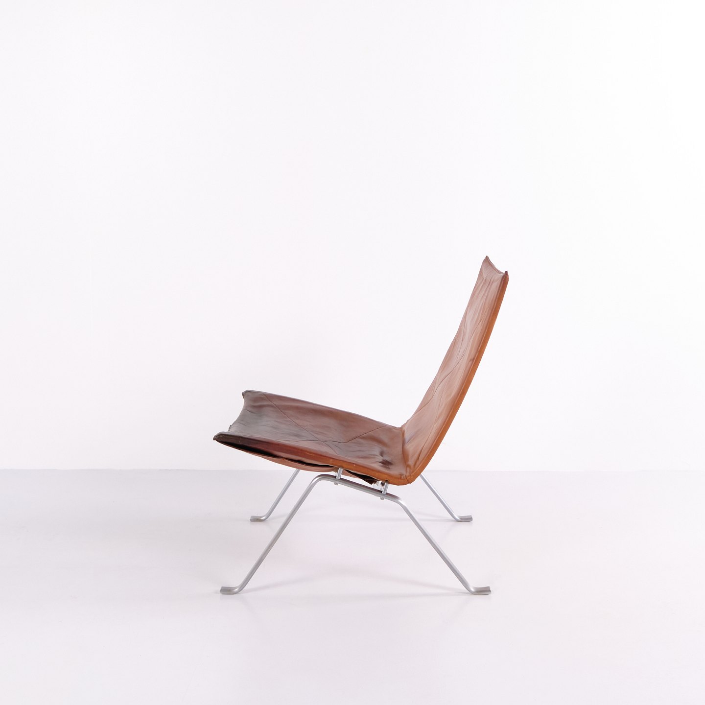 PK22 lænestol af Poul Kjærholm for E. Kold Christensen. Original polstring i patineret cognac læder. Dansk designikon fra 1950’erne.