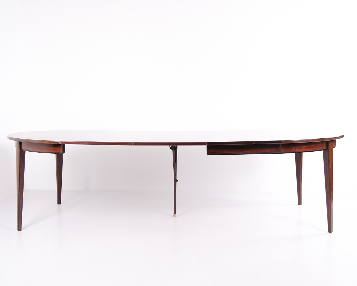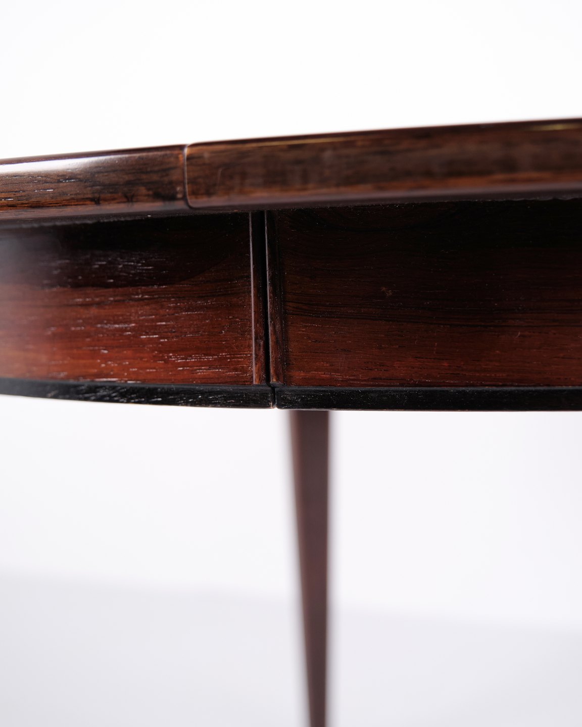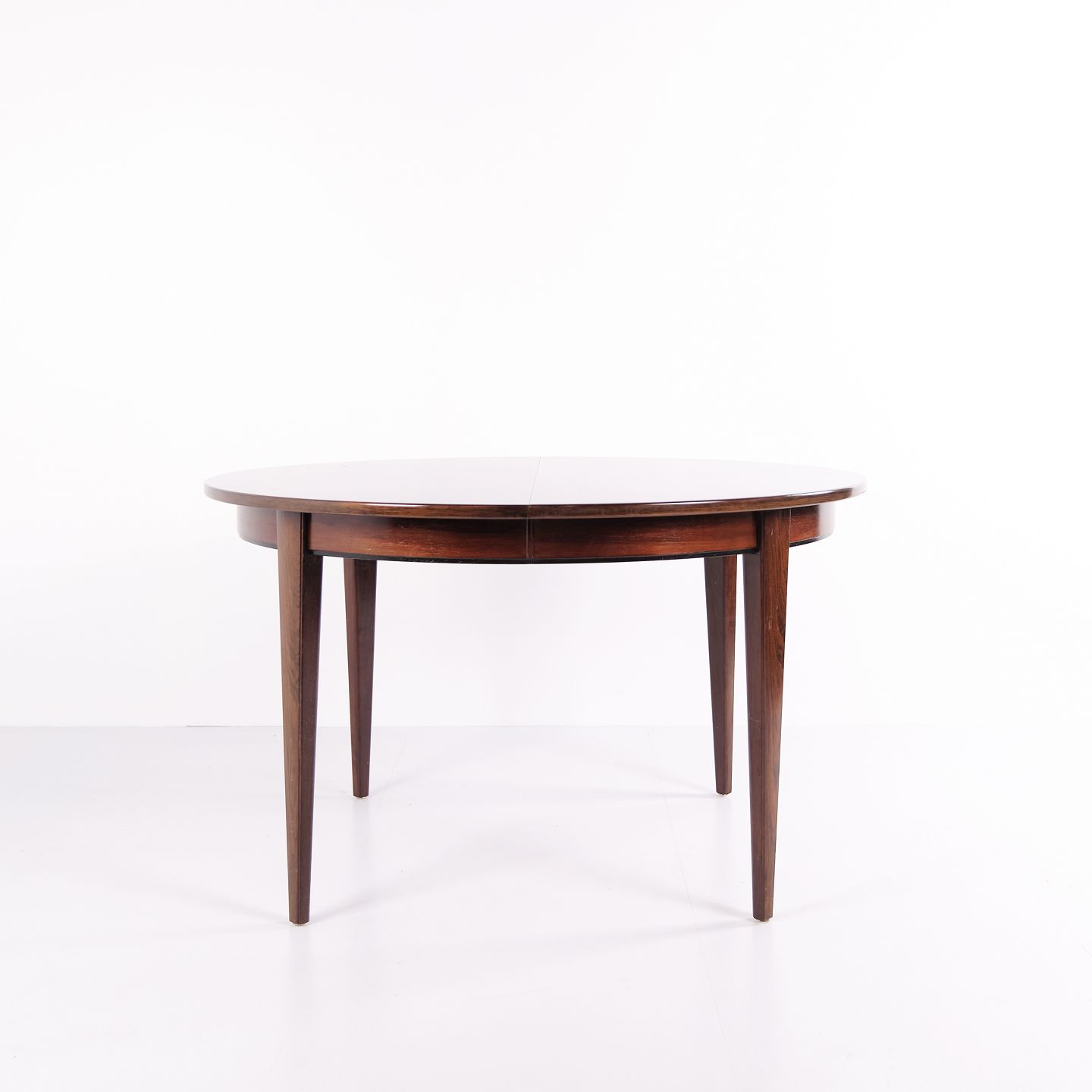 Rundt spisebord model 55 i palisander, designet af Gunni Omann for Omann Jun Møbelfabrik. Med 3 tillægsplader. Dansk design fra 1960’erne.